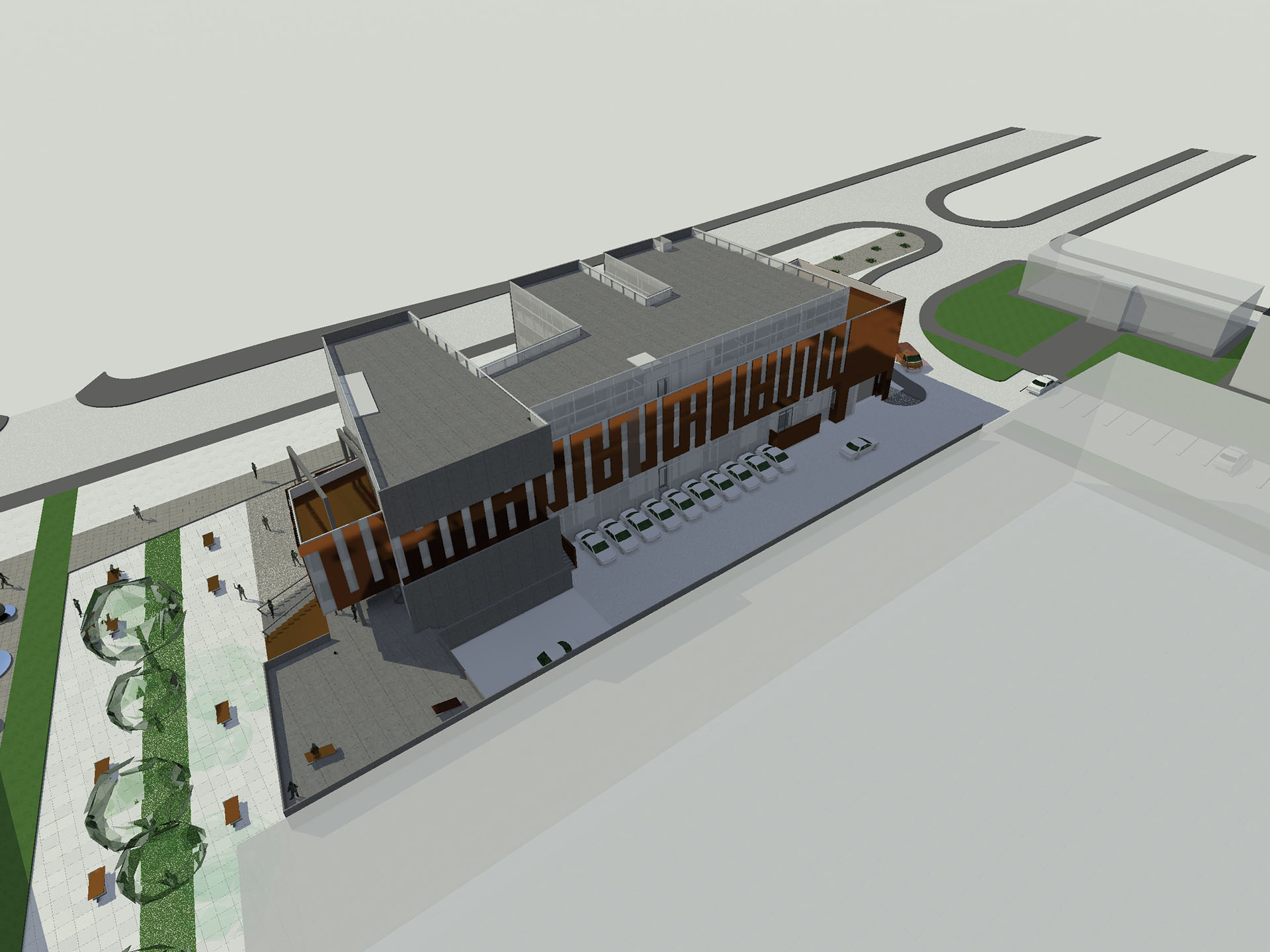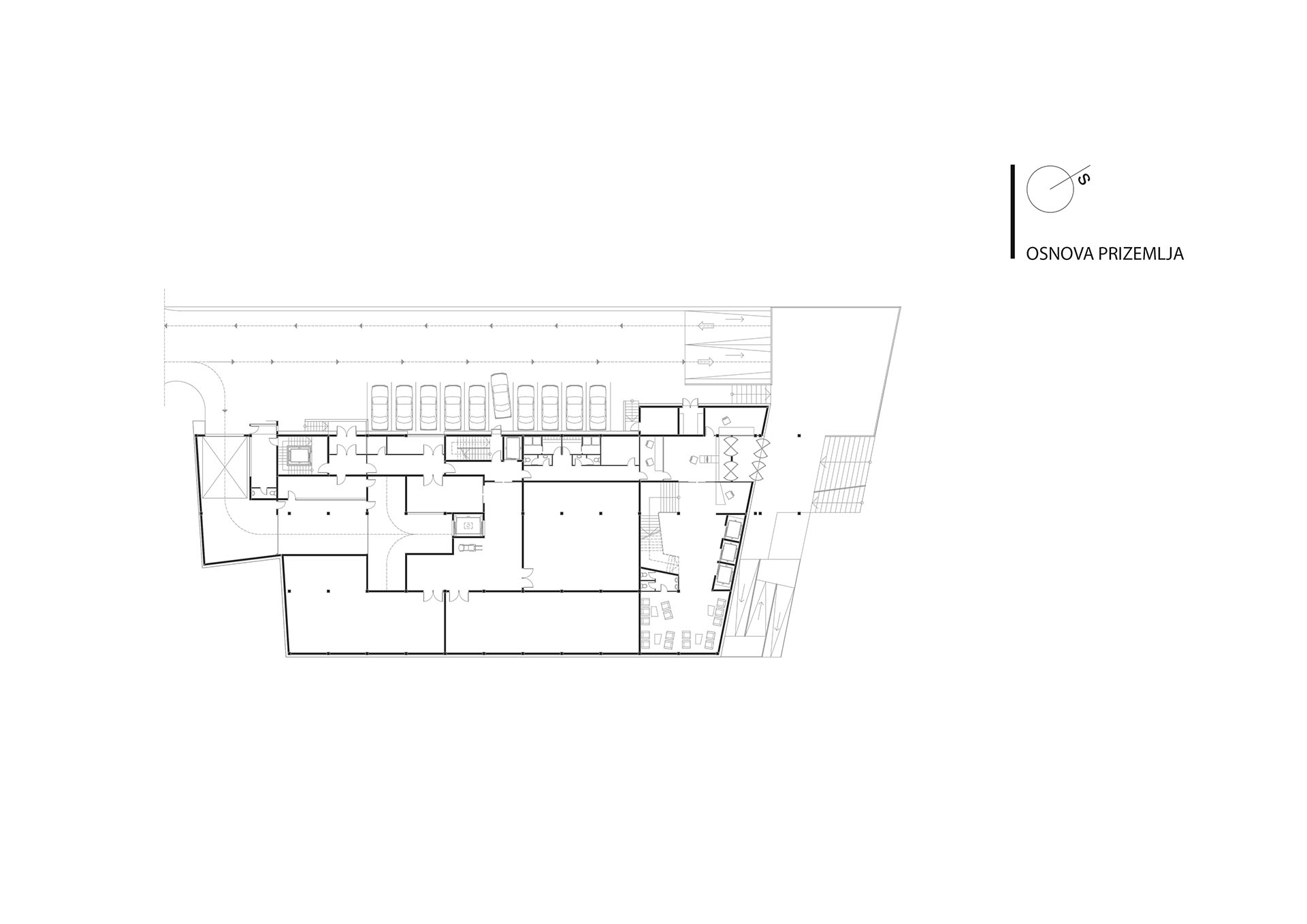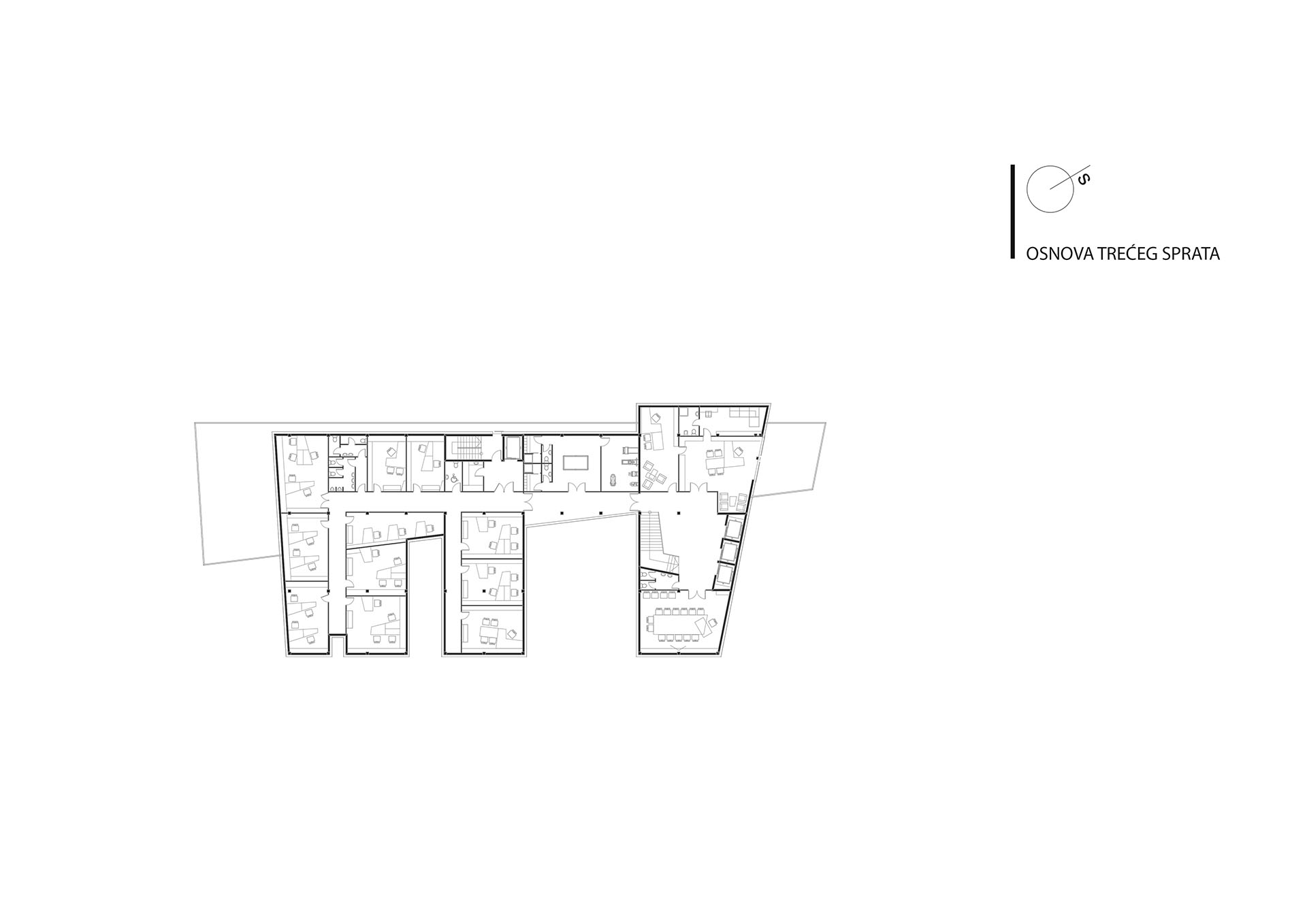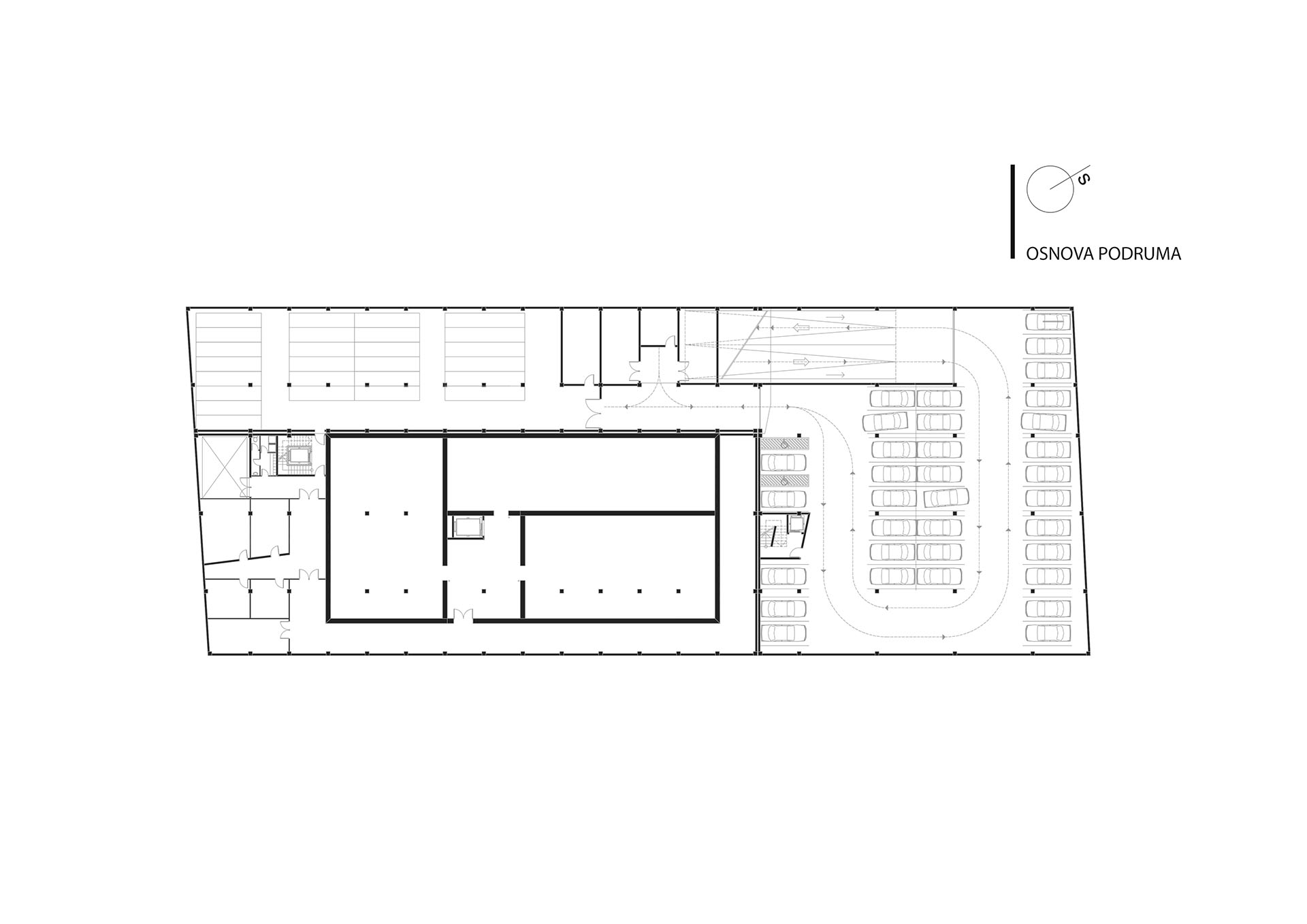 Glavna odrednica pri projektovanju je bila pravilna orjentacija kancelarijskih prostora kao i osvjetljenje i smještaj unutar objekta prostora koji su pod nultom zaštitom. Prostori koji ne trebaju  prirodno osvjetljenje su postavljeni u podrumsku etažu.
