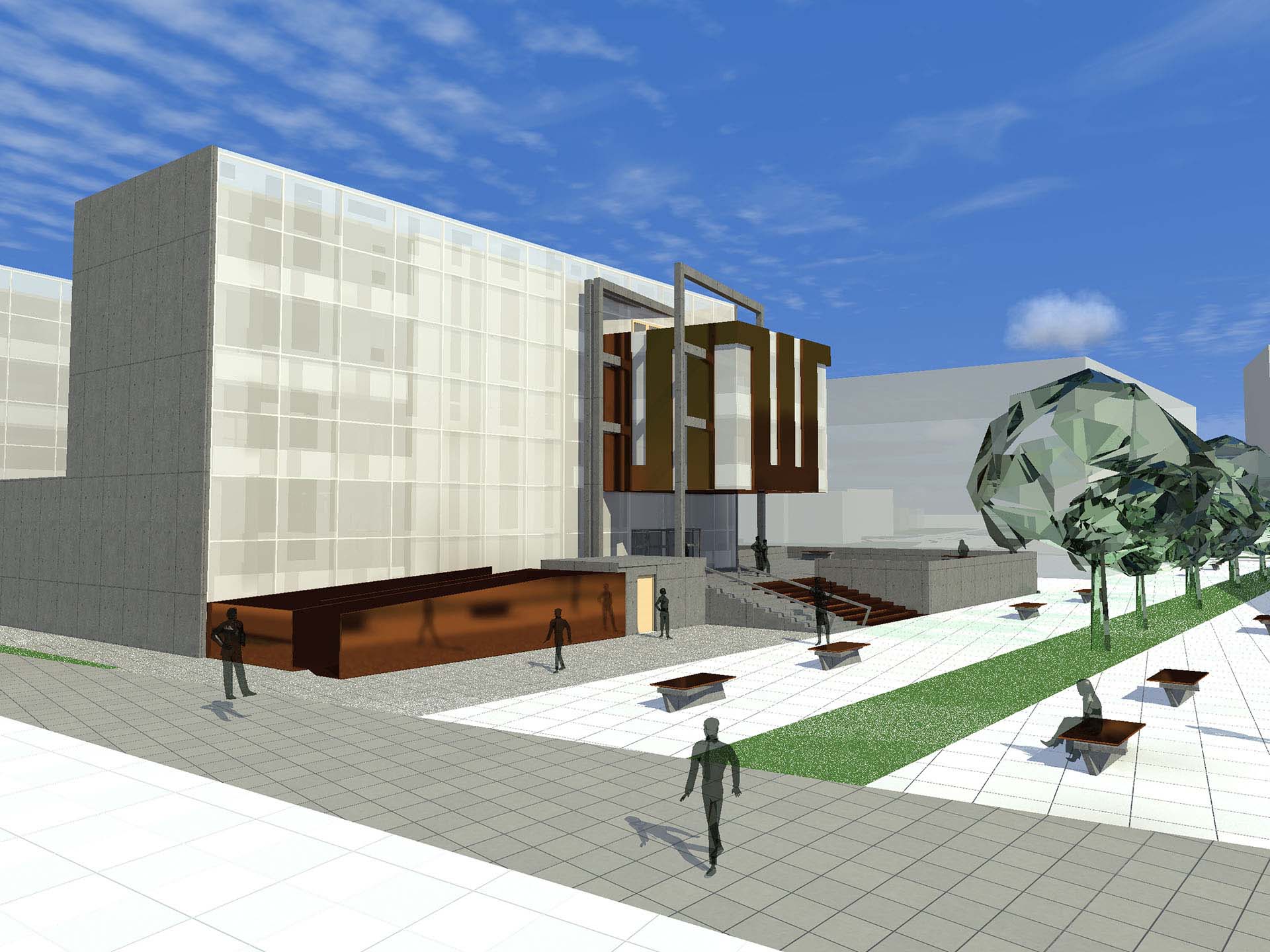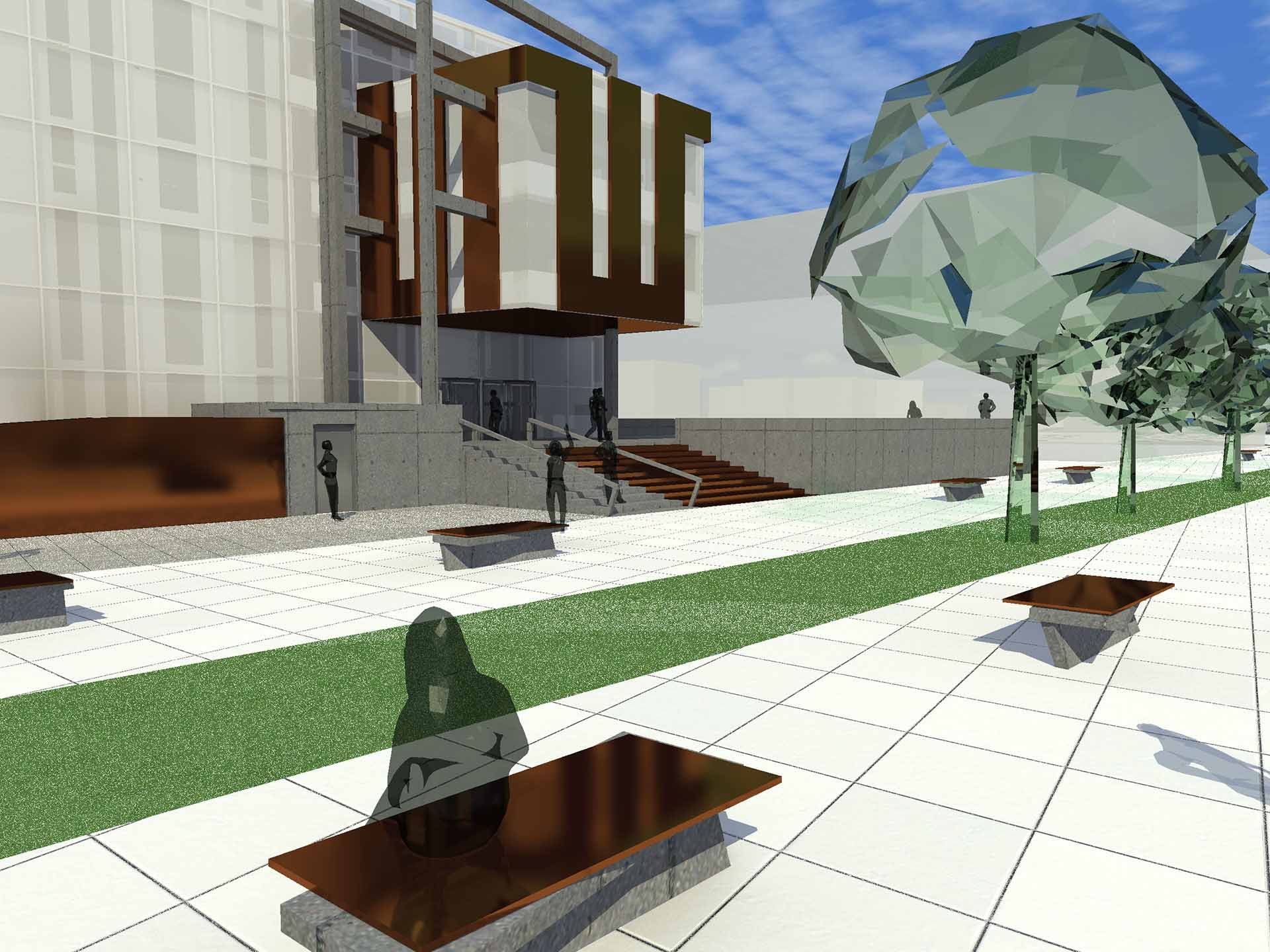 Markica, koju obuhvata zona građenja data urbanističko-tehničkim uslovima, je horizontalni gabarit objekta definisan njenim granicama. Spratnost objekta je Su/Po + P +3. Glavna fasada objekta prema Vidovdanskoj ulici je jugoistočna fasada. Kako bi trebalo da je glavna fasada ujedno i najatraktivnija, idejnim rješenjem je prikazan, na uličnoj fasadi, osnovni karakter ove institucije i suština Centralne banke. Ulična fasada je stroga, zatvorena i siva. Poslovna i granična prema ulici fasada govori o ozbiljnosti objekta i funkcija koji on zahtjeva. Pravilni pravougaonici ove fasade stoje u međusobnom skladu. Kompoziciono mirni i čisti geometrijski oblici objekta nagalašavaju njegovu funkciju.