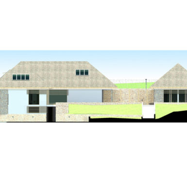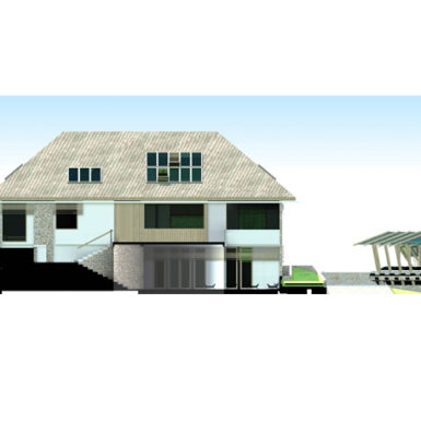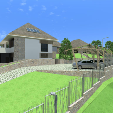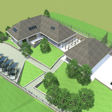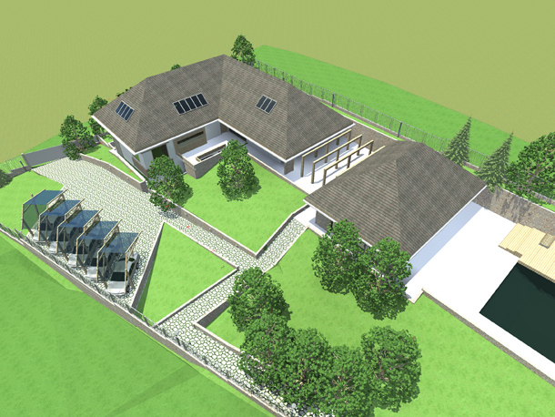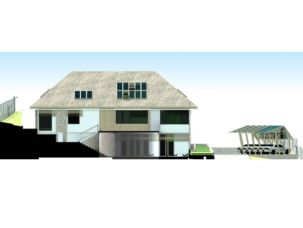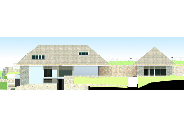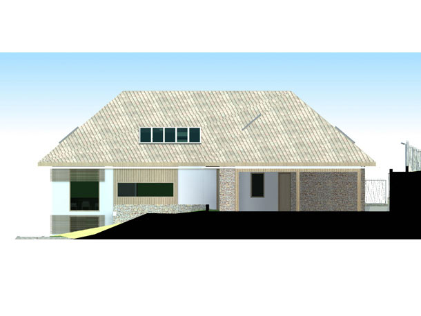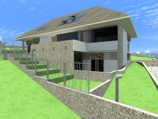 Pitanje je bilo kako podići modernu energetski efikasnu novogradnju, ovdje u ovom posebno lijepom prostoru, koja uprkos velikoj kvadraturi neće dominirati prirodom već će se stopiti sa njom. U vrlo osobnom razgovoru sa investitorima počeo se razvijati prostran, jednospratni prostor kuće koji je nastao na suterenskom prostoru koji je popunio prirodnu prazninu u terenu, a krovne ravni koje prate nagib padine u pozadini unutar sebe obezbjeđuju sjajne prostore za odmor.