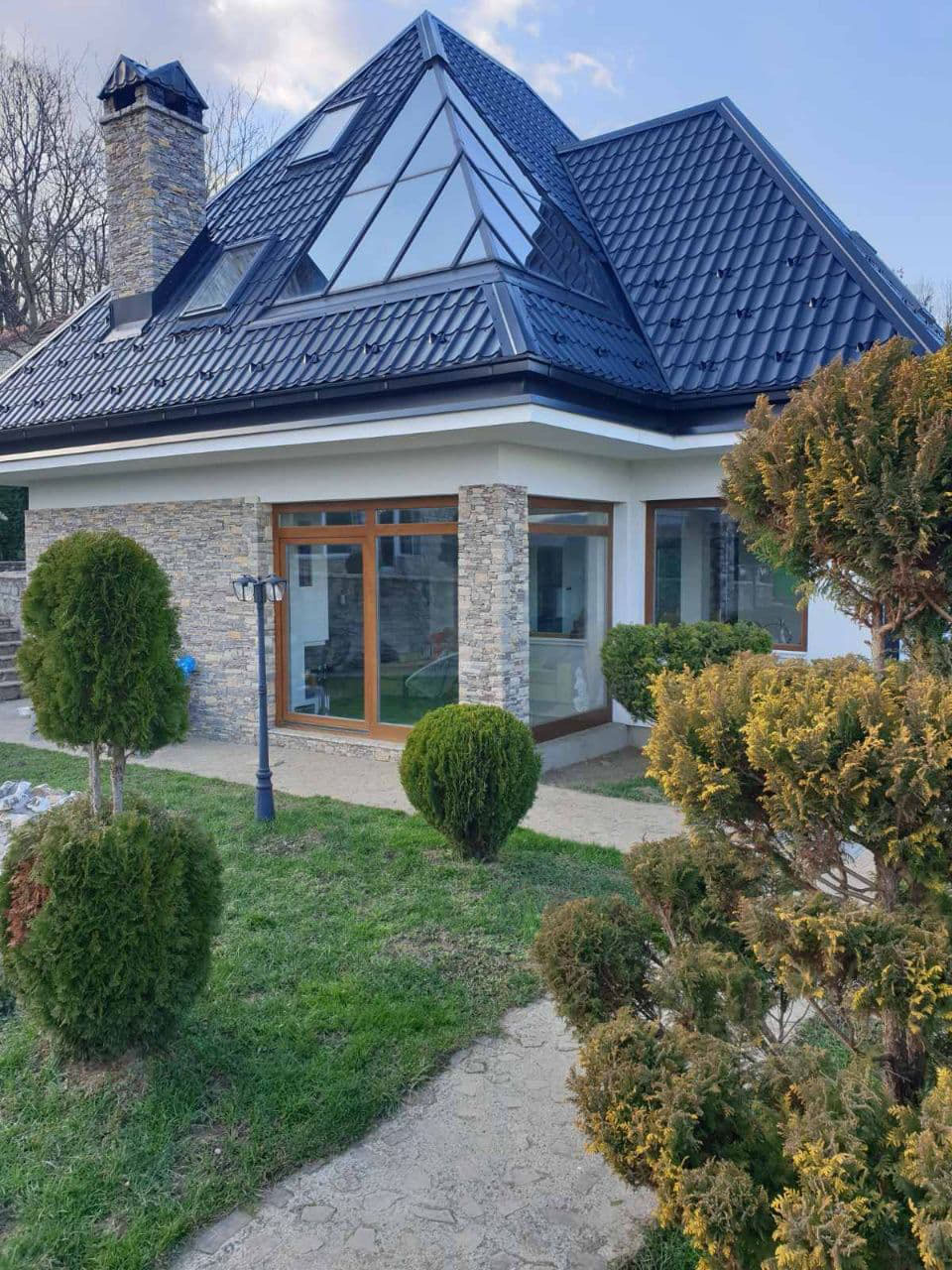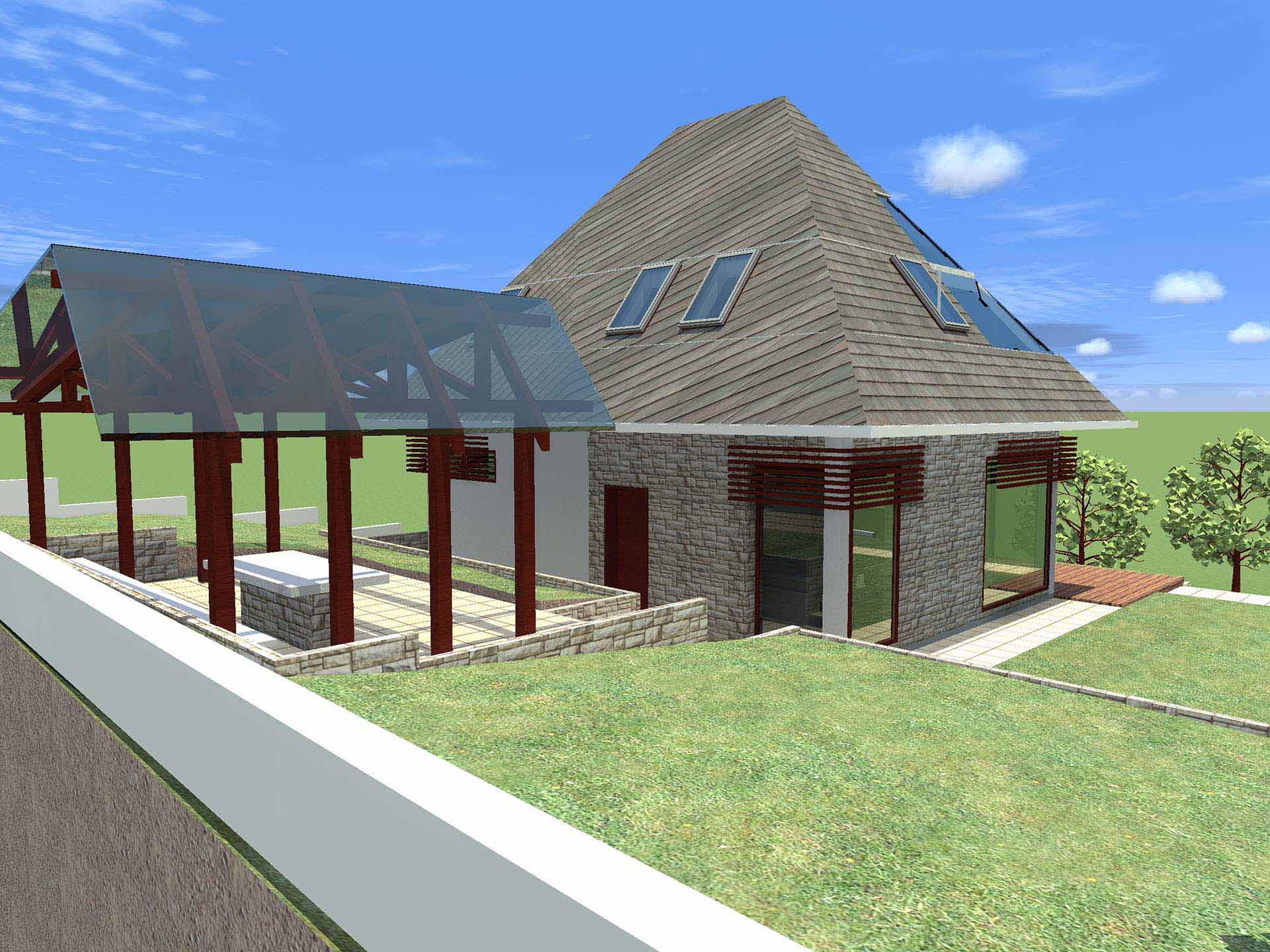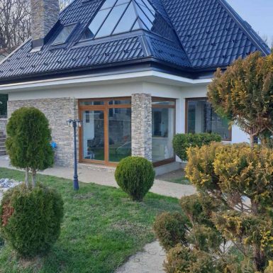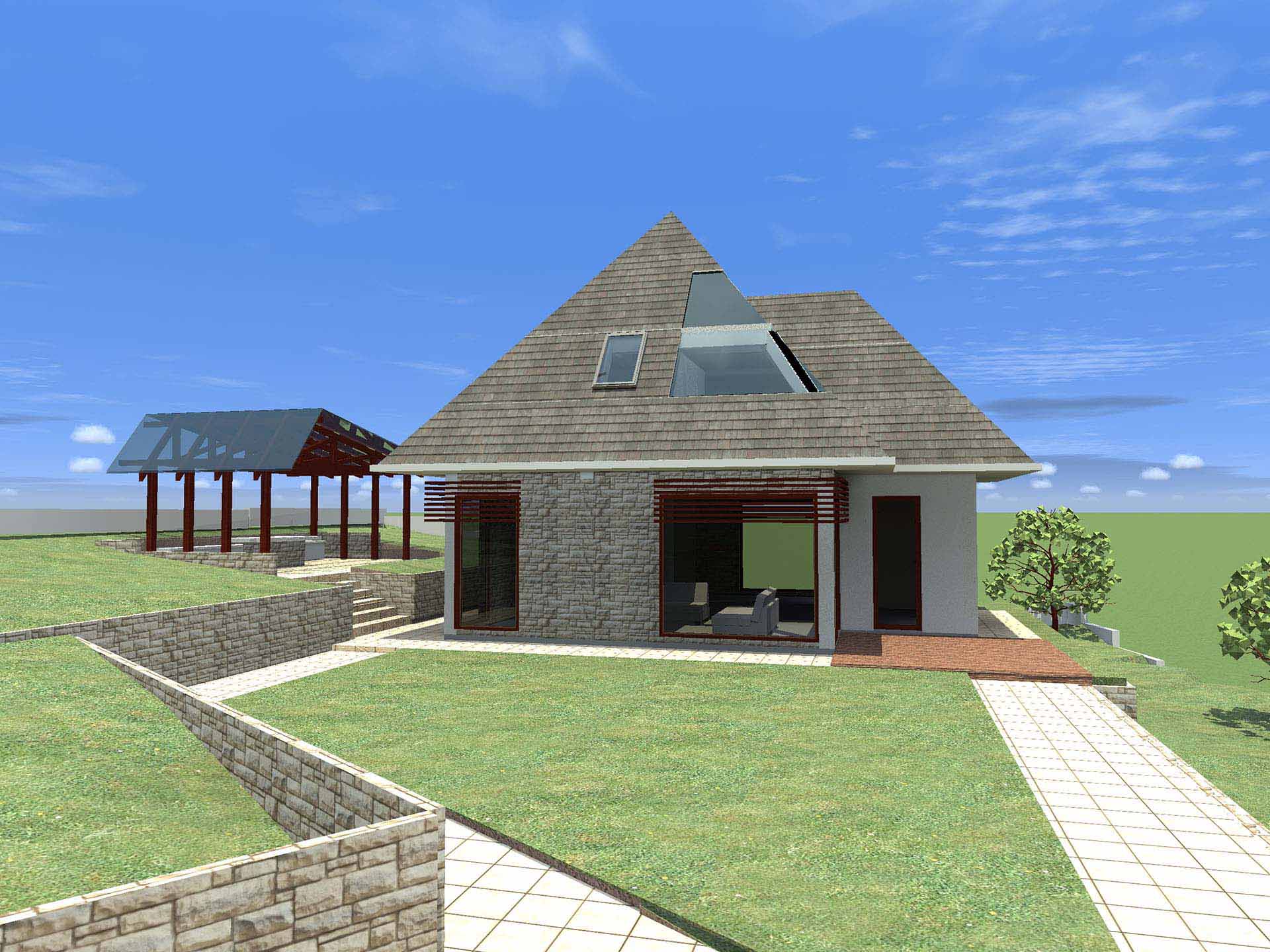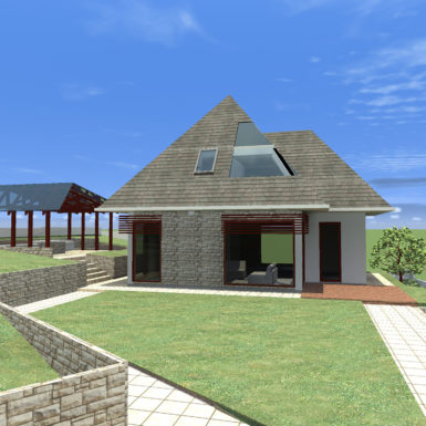 Prirodna žudnja čovjeka za prirodom, potreba da osjeti da je dio zemlje, vjetra i vode. Projekat inspirisan ovim elementima povezuje prirodu i arhitekturu – kuća za odmor na obodu Slatine na padini brda sa predivnim pogledom na dolinu ispod i brda preko. Kuća je prilagođena brdu tako što se sa zadnje strane ukopava u njega dok je prednja u vertikali dodatno naglašena visokim krovom i kamenim dimnjakom. Tamo gdje nije kamen je drvo, a bjelina zida tek da naglasi oboje.