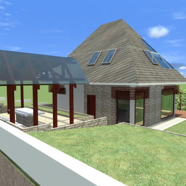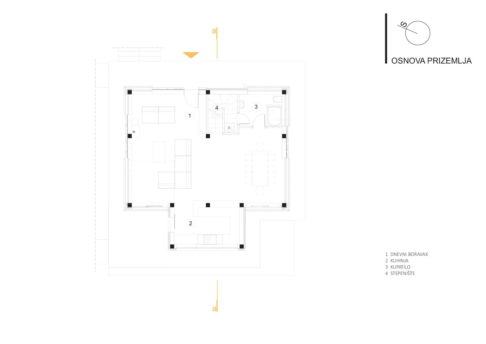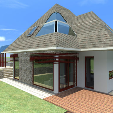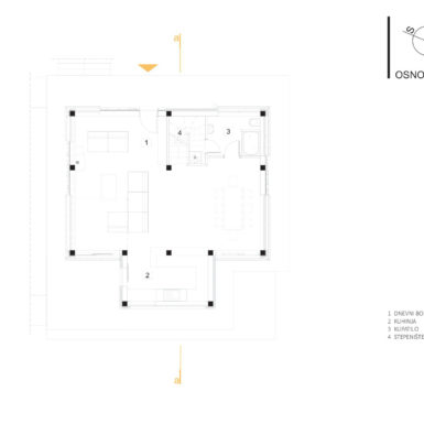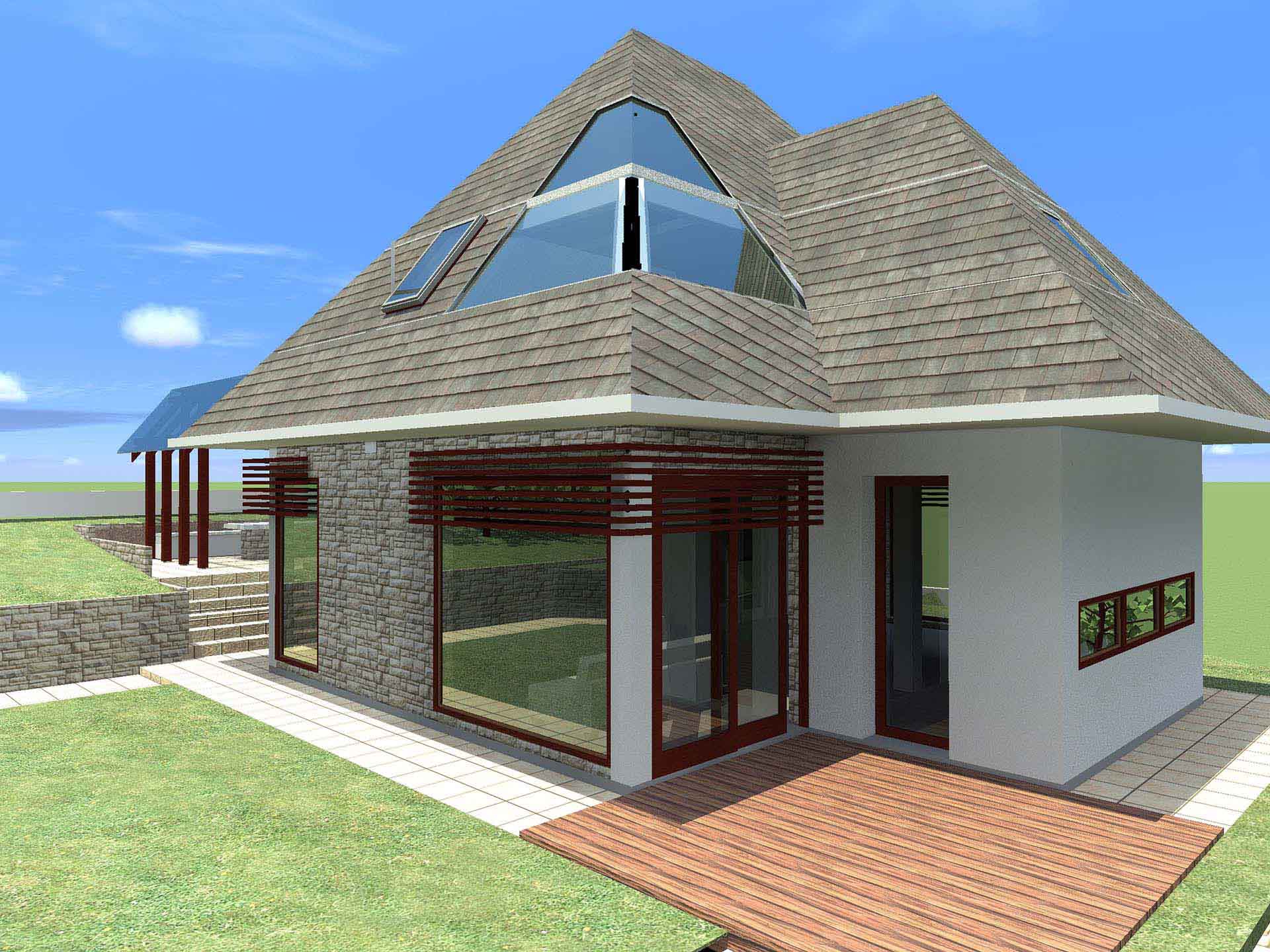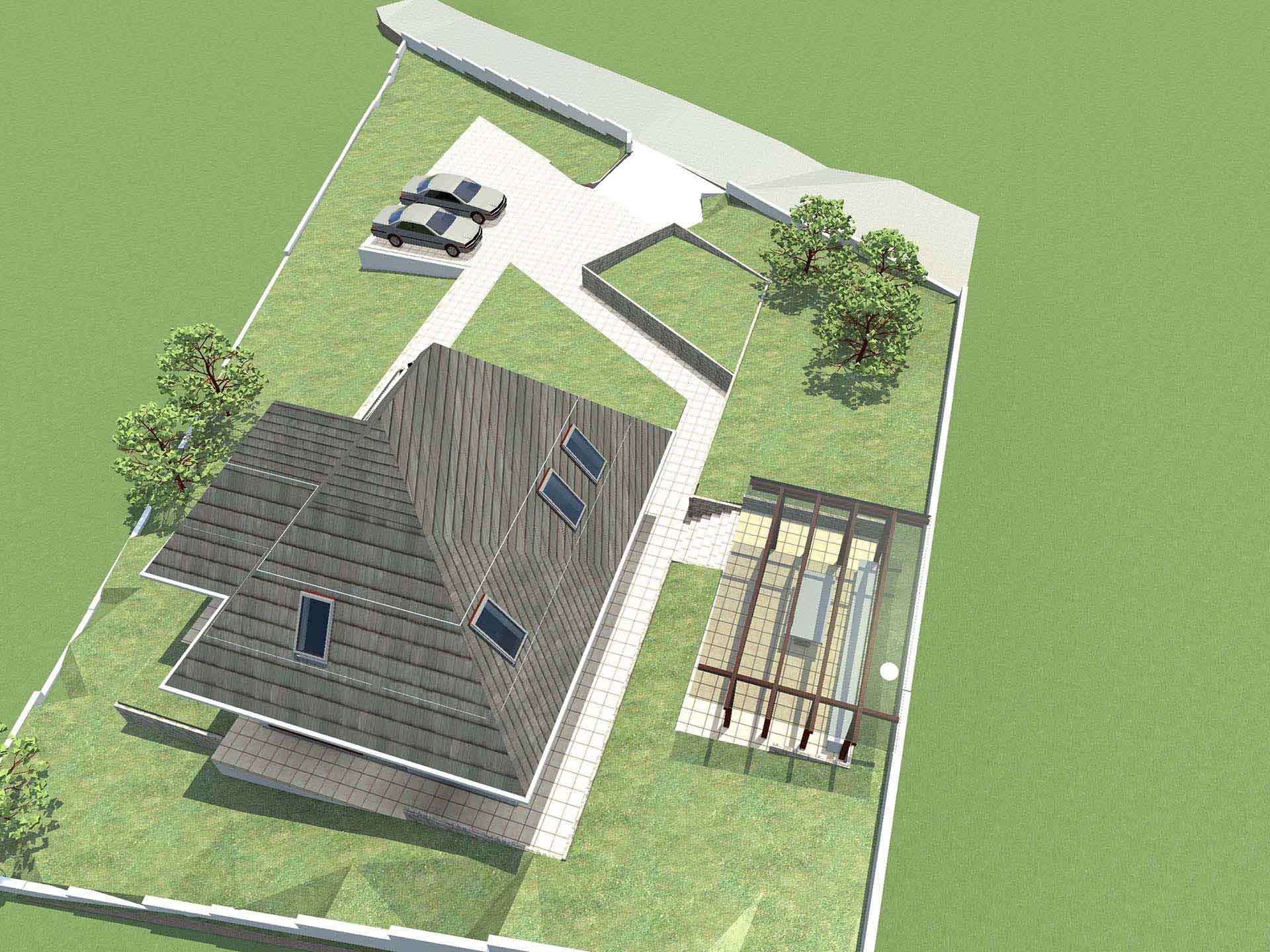 Osim uklapanja u okruženje bilo je bitno dobiti nepomućeni pogled na okolinu, a obezbjediti i vrt na malom prostoru. Zato je dnevni boravak na dva nivoa gdje je na prvom povezan sa vrtom, a sa drugog se uživa u pogledu od izlaska sunca pa do njegovog zalaska.