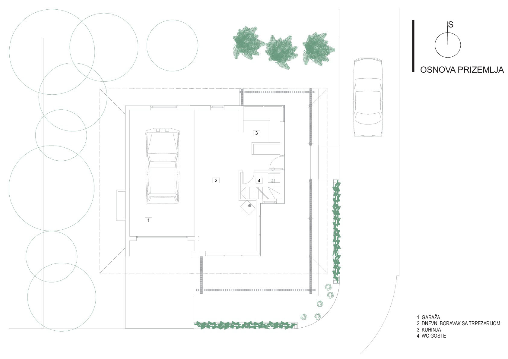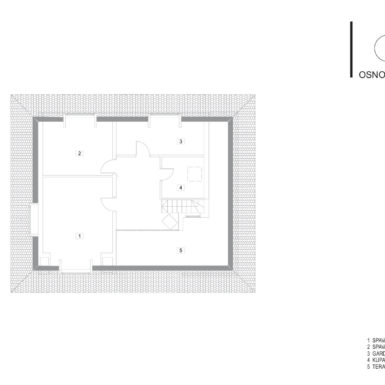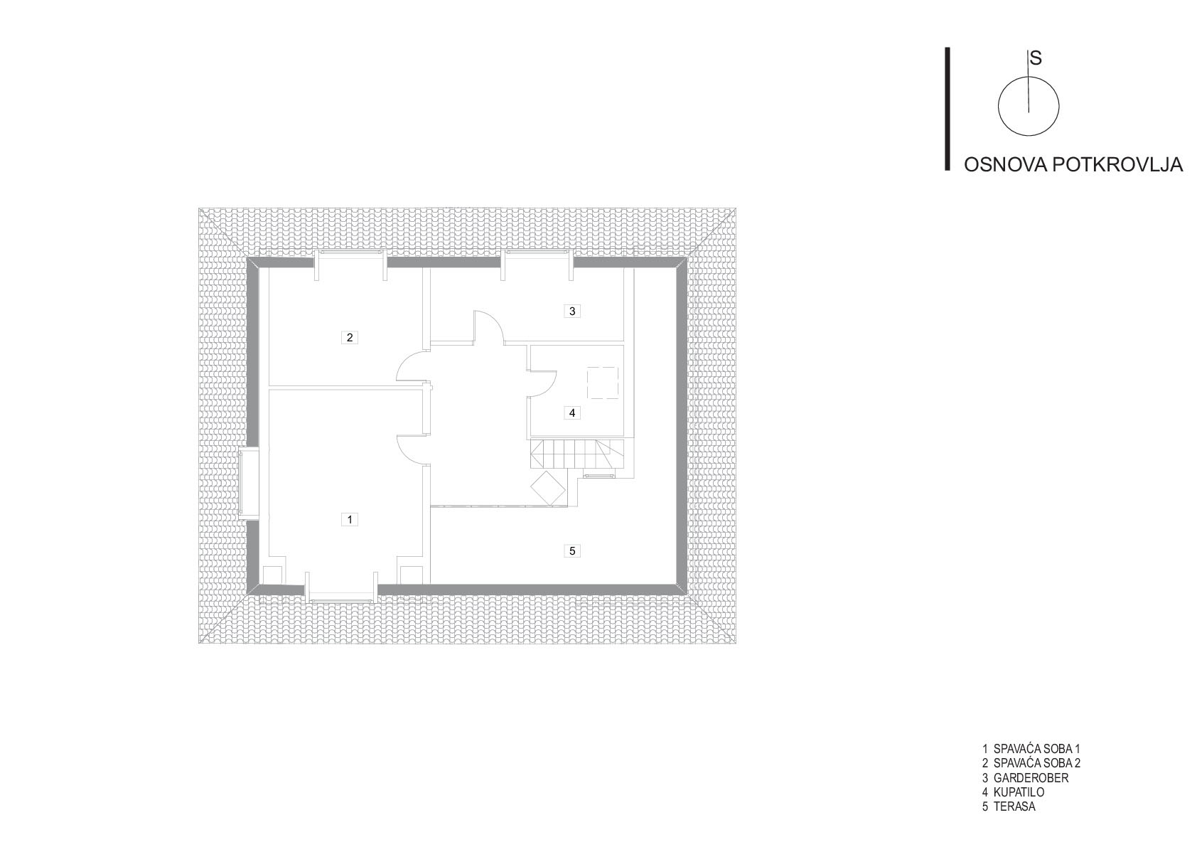 Organizovana ispod krova na kupreškoj visoravni poznatoj po jakim vjetrovima i oštrim zimama, kuća se pojavljuje kao neproziran kubus koji dvosmisleno izražava masivno fizičko prisustvo i snagu da se predstavi kao apstraktno oblikovana kompozicija kao i da zaštiti i ušuška svoje korisnike za visokih snjegova i pruži im dodatni ugođaj topline. Kubično svedena forma krova strmog nagiba kakav se već stoljećima gradi na ovim prostorima omogućava da se snijega zadrži ,,taman” koliko treba.