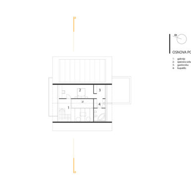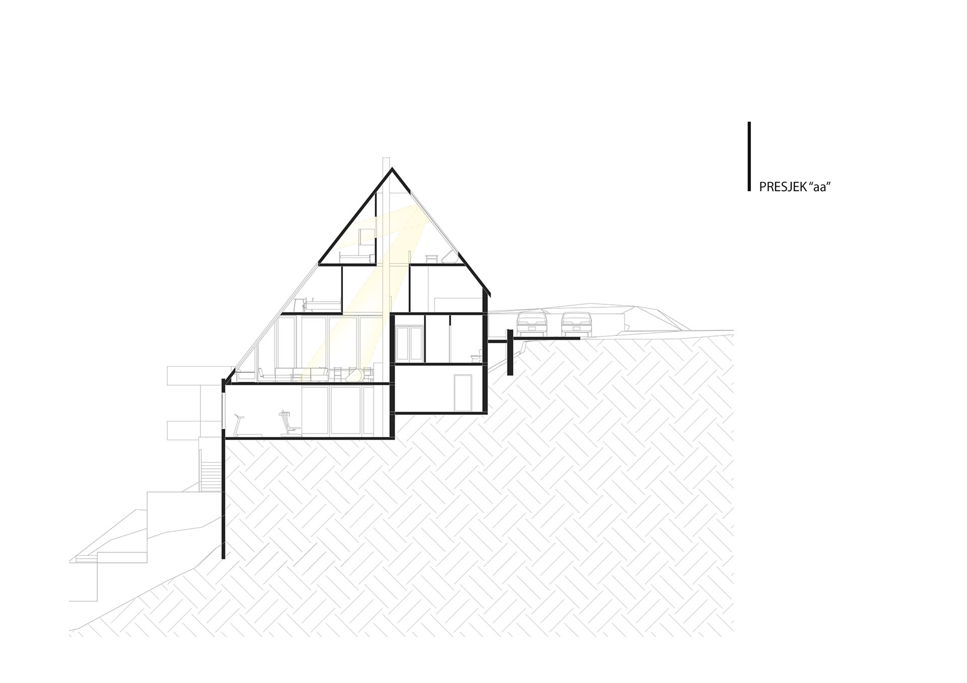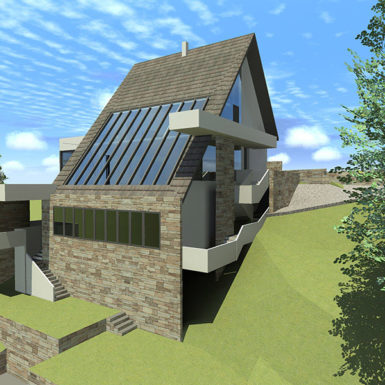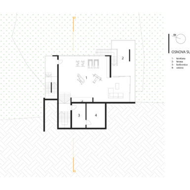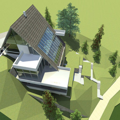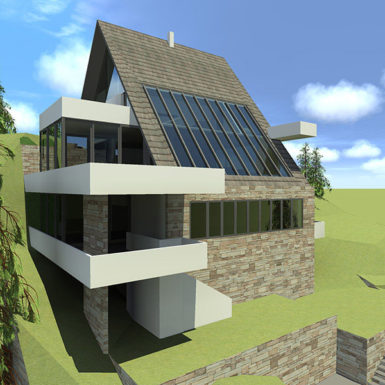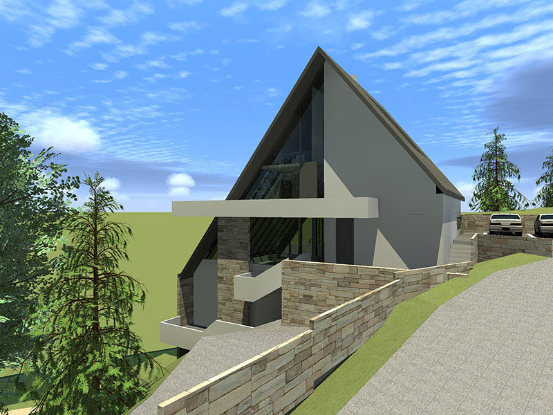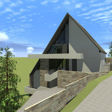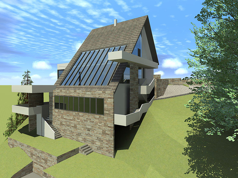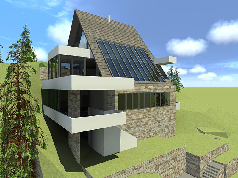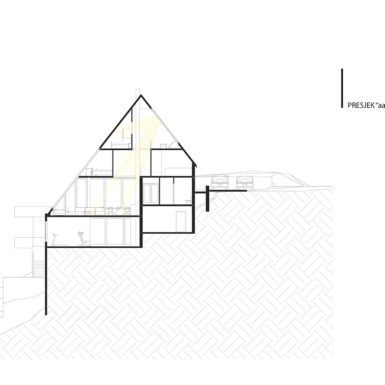 Stav vlasnika bio je da kuća ovog tipa i sa ovakvom pozicijom treba da zadovolji i neke nekonvencionalne zahtjeve stanovanja, tako da je na prvoj suterenskoj etaži prostor konobe i vinski podrum i dio za rekreaciju sa velikom terasom za ljetno sjedenje u hladovini i silazak do rijeke. Prostor za dnevni boravak porodice je na drugom suterenskom nivou i orjentisan na istok, a najviša prizemna etaža je ostavljena za odmor. Ova kuća za odmor zamišljena je tako da pruži pun konfor svojim korisnicima. Ona u svom pojavnom obliku predstavlja model stambenog objekta uklopljenog u prostor padine i u sebi nosi kvalitet i atraktivnost mjesta na kome se nalazi, gradeći tako za sebe atribute ekskluzivnog.
