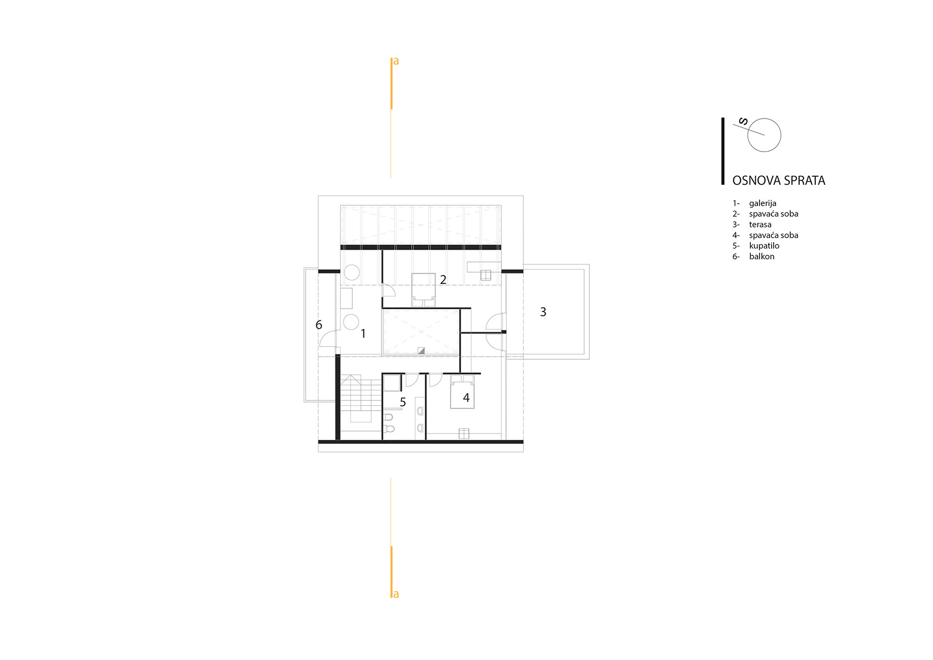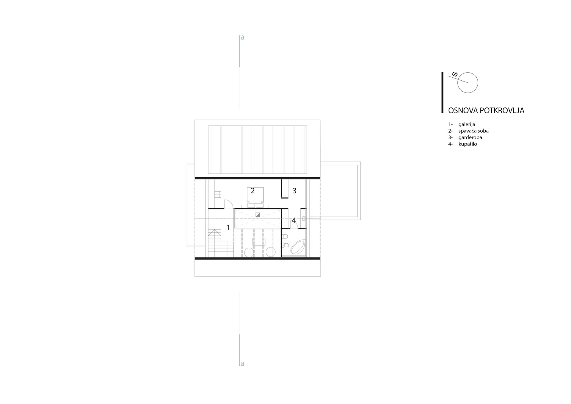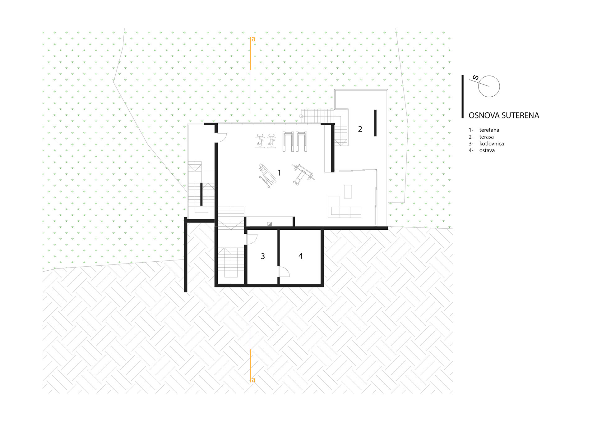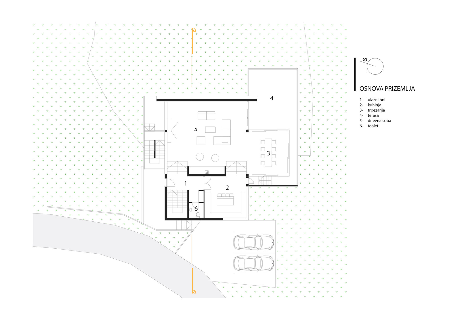 Stav vlasnika bio je da kuća ovog tipa i sa ovakvom pozicijom treba da zadovolji i neke nekonvencionalne zahtjeve stanovanja, tako da je na prvoj suterenskoj etaži prostor konobe i vinski podrum i dio za rekreaciju sa velikom terasom za ljetno sjedenje u hladovini i silazak do rijeke. Prostor za dnevni boravak porodice je na drugom suterenskom nivou i orjentisan na istok, a najviša prizemna etaža je ostavljena za odmor. Ova kuća za odmor zamišljena je tako da pruži pun konfor svojim korisnicima. Ona u svom pojavnom obliku predstavlja model stambenog objekta uklopljenog u prostor padine i u sebi nosi kvalitet i atraktivnost mjesta na kome se nalazi, gradeći tako za sebe atribute ekskluzivnog.