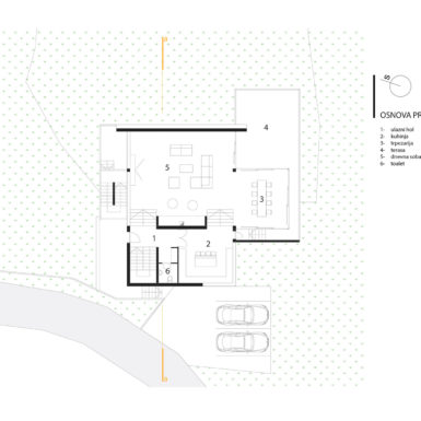 Odavno je poznato da duh mjesta na izuzetan način sebi podređuje sve ostale faktore koji manje ili vise utiču na krajnji rezultat jednog objekta. Urbanistički i arhitektonski koncept, funkcionalna šema, oblikovanje i materijalizacija, uslovljeni su specifičnostima podneblja i terena. Jedno tako neobično mjesto je ono na kome je projektovana ova kuća za odmor. Na strmoj sjevernoj padini prema rijeci Krupi obrasloj šumom i stjenovitoj.