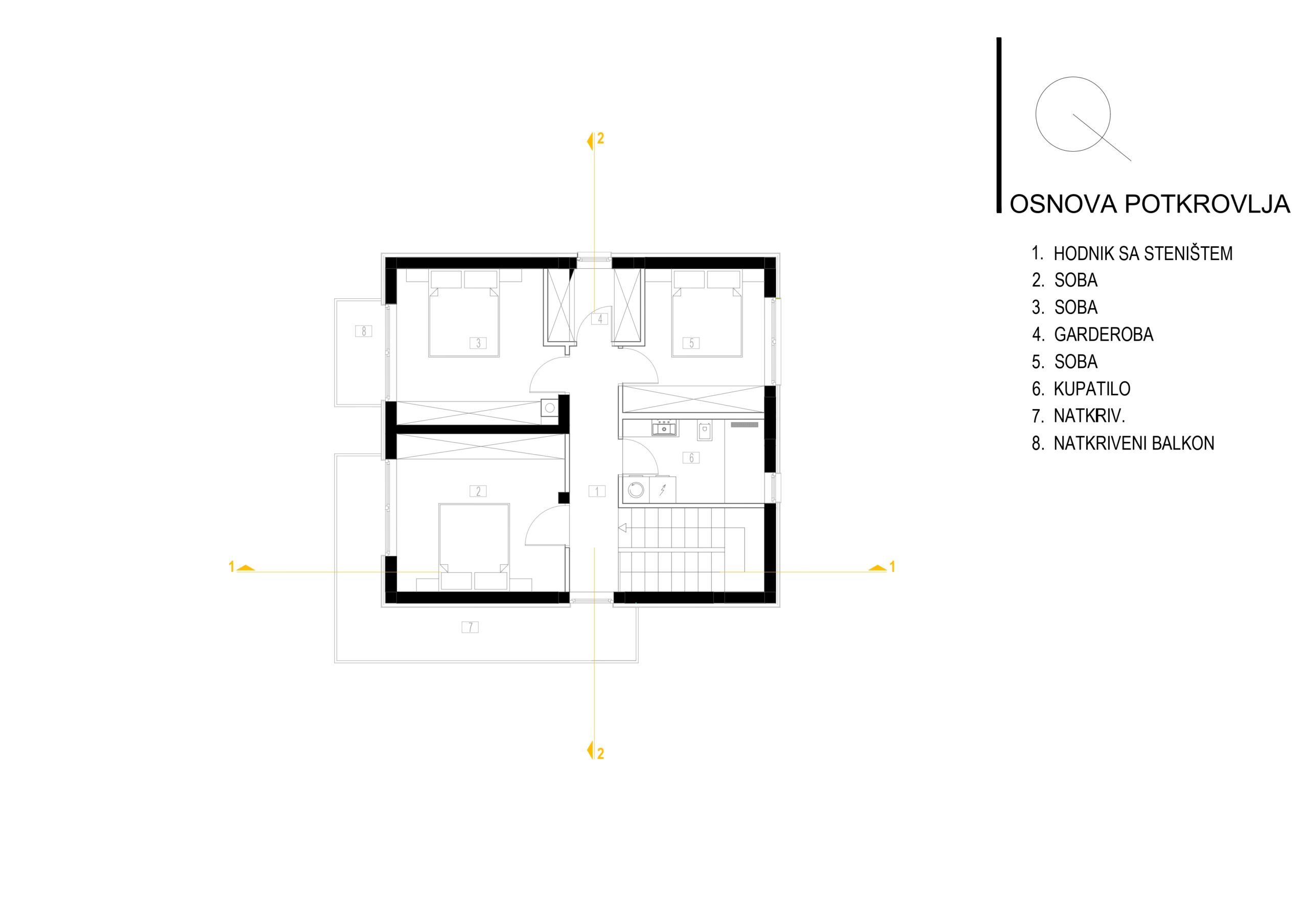 U potkrovlju: se nalaze tri spavace sobe sa pripadajucim kupatilom. Ukupna korisna površina potkrovlja je 56.27m2.