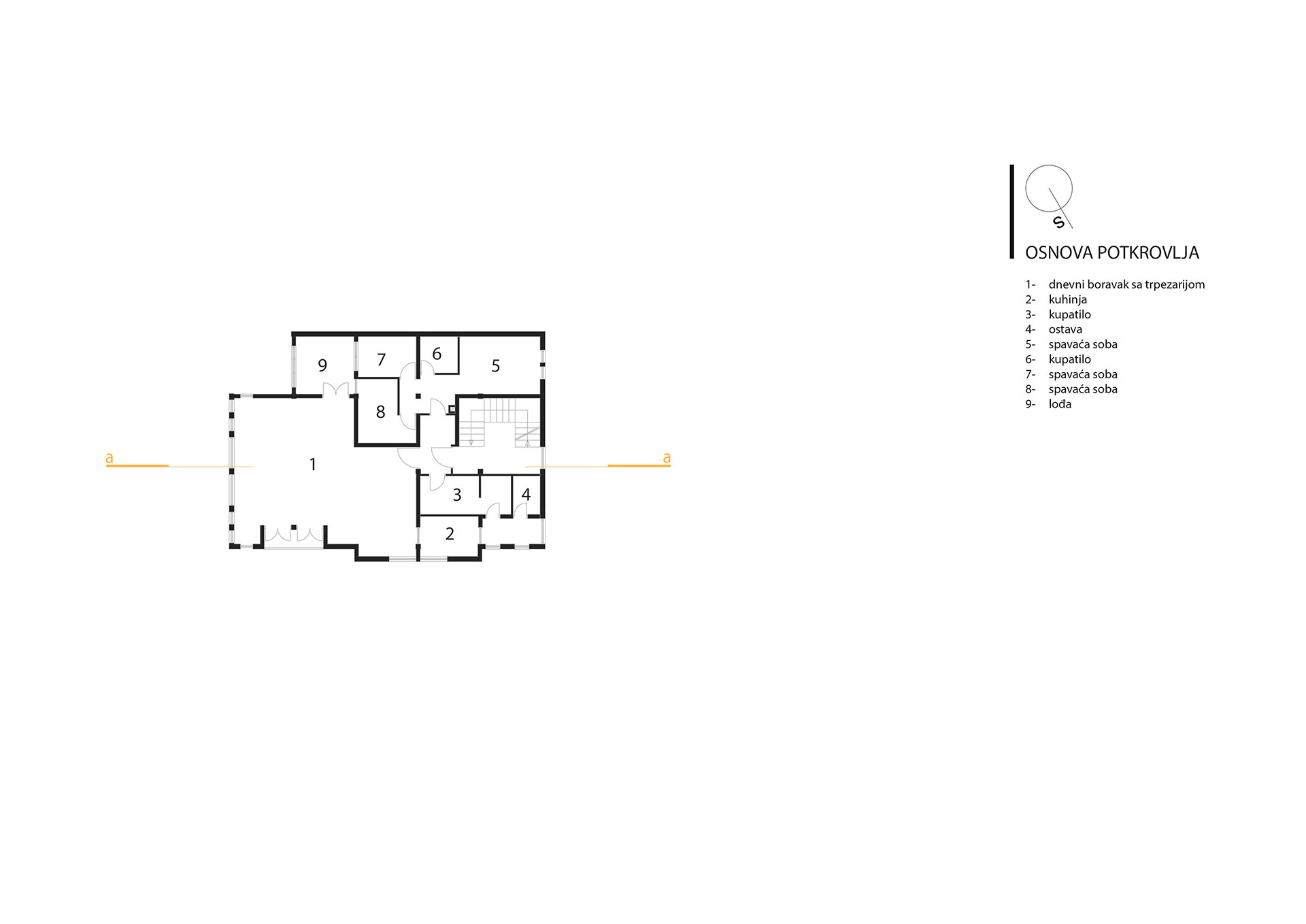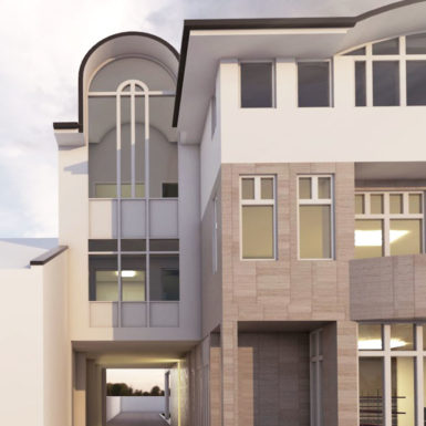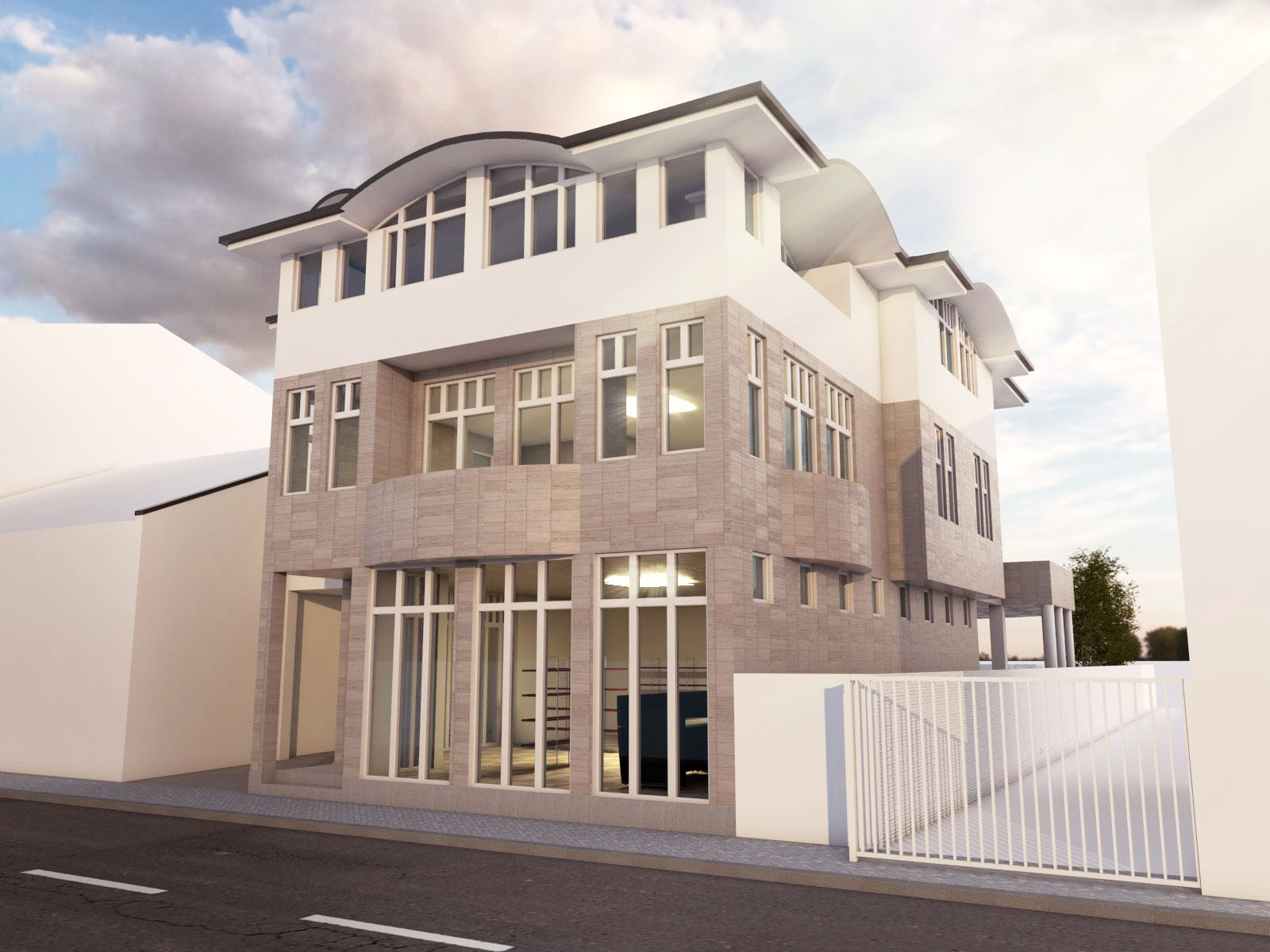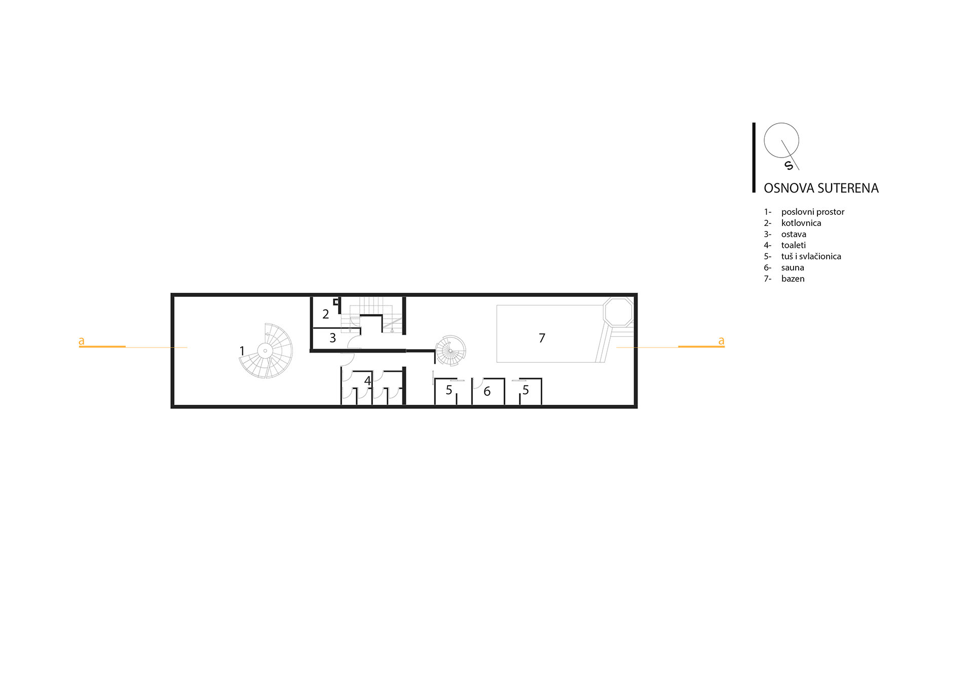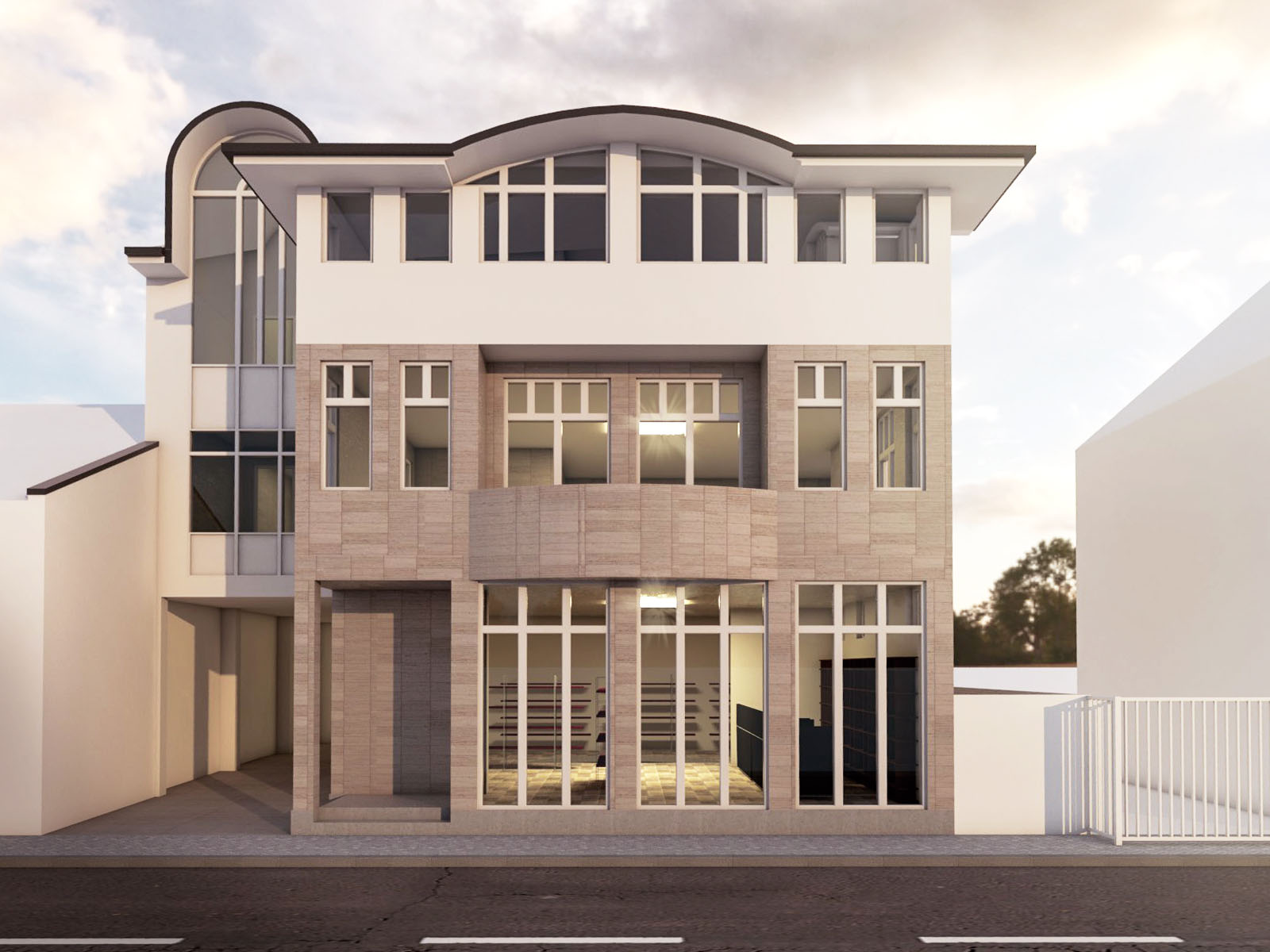 U najužem dijelu grada na parceli od 403m2 projektovan je objekat poslovno stambeni sa poslovanjem u prizemlju i na nivou podruma u dijelu podrumske etaže do ulice i dva stana na spratu i potkrovlju koji zajedno koriste podrumski dio etaže okrenut prema dvorištu.