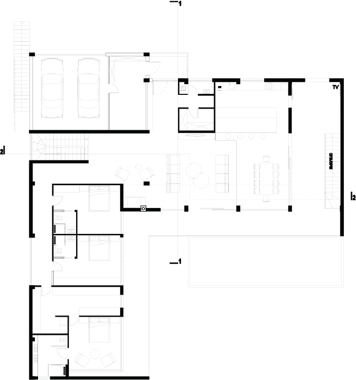 Tipološki gledano objekat je urbana vila, individualni stambeni objekat sa jednom stambenom jedinicom I velikim prostorom za druženje.Konfiguracija terena omogućila je da se različiti sadržaji pozicioniraju jedan iznad drugog, tako da se stvori dovoljno privatnosi I maksimalno iskoristi otvorenost vizurama.