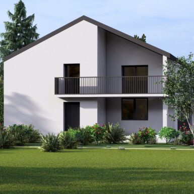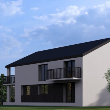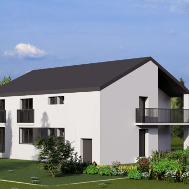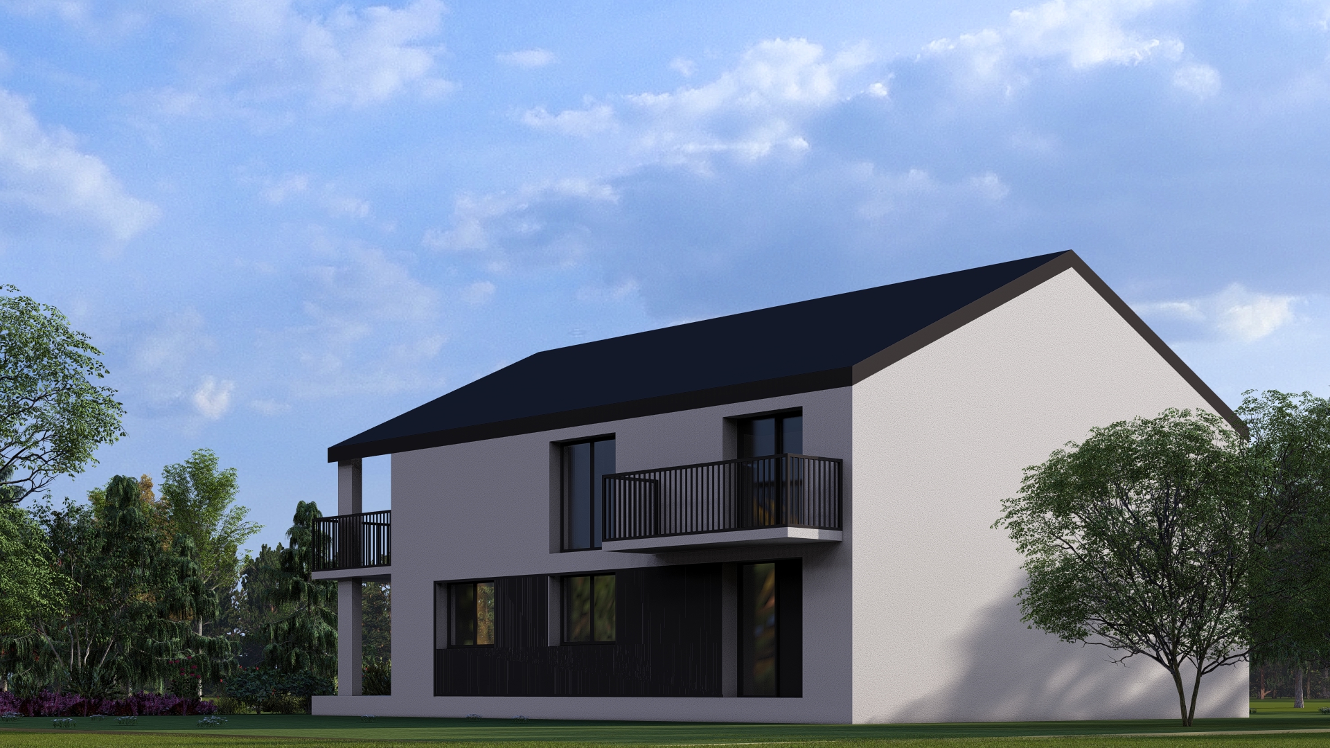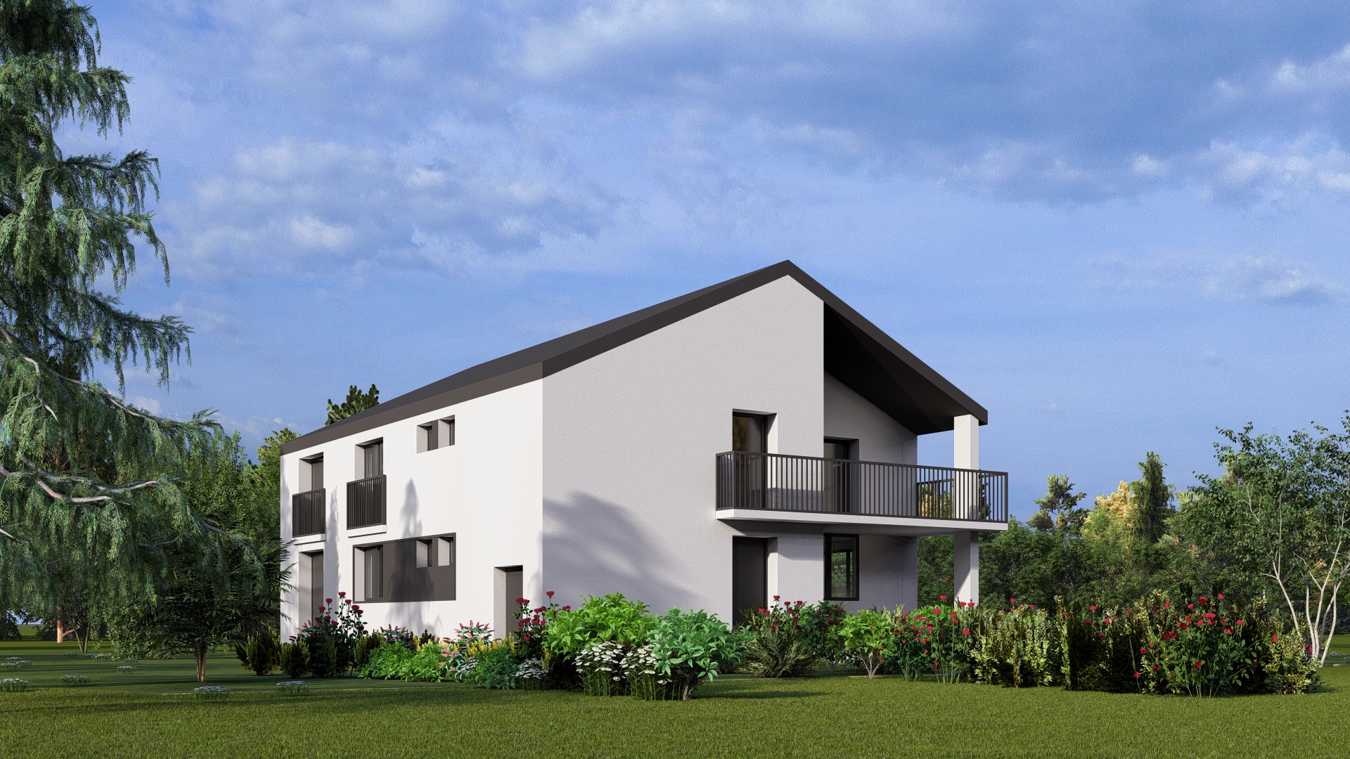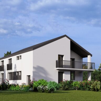 Otvaranjem prema pogledima stvoreni su prostori puni svjetla a dnevni boravci oba stana otvaraju se na terase koje su u kontaktu sa prostranim prostorom dvorišta sa voćnjakom.