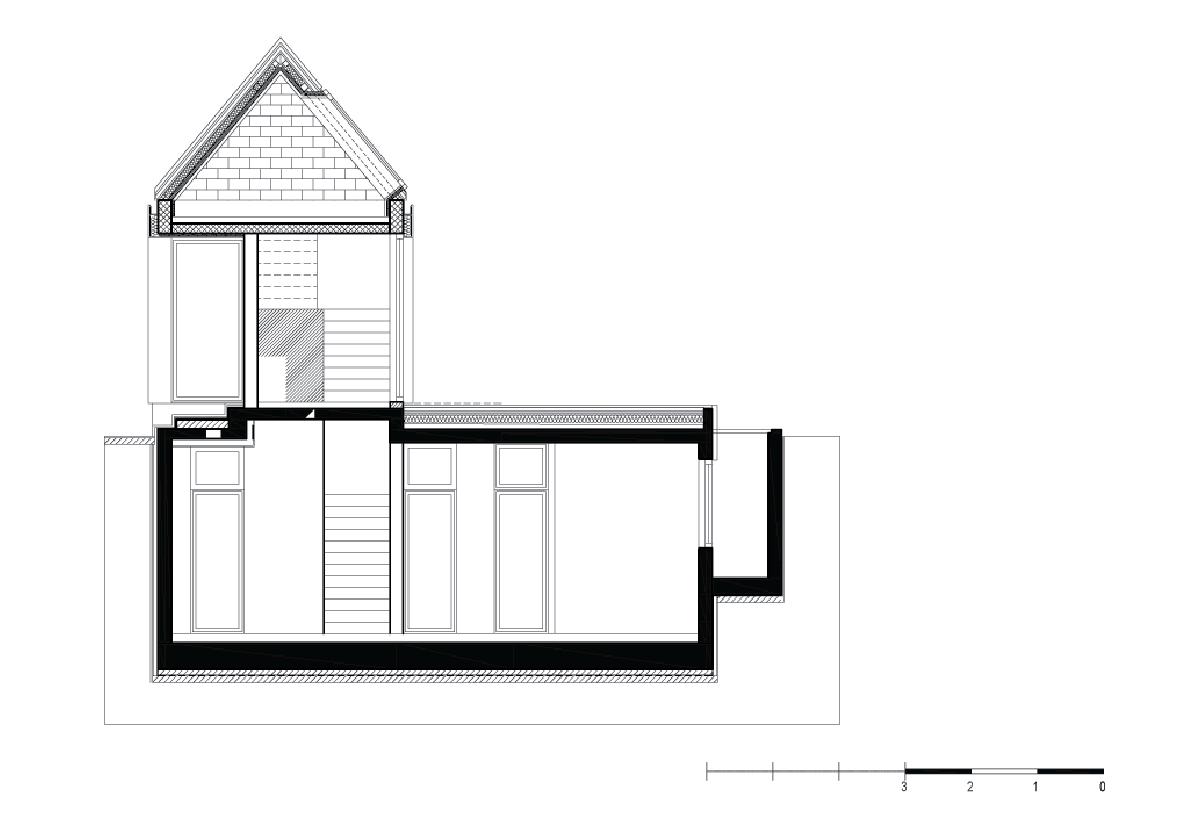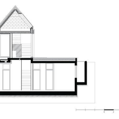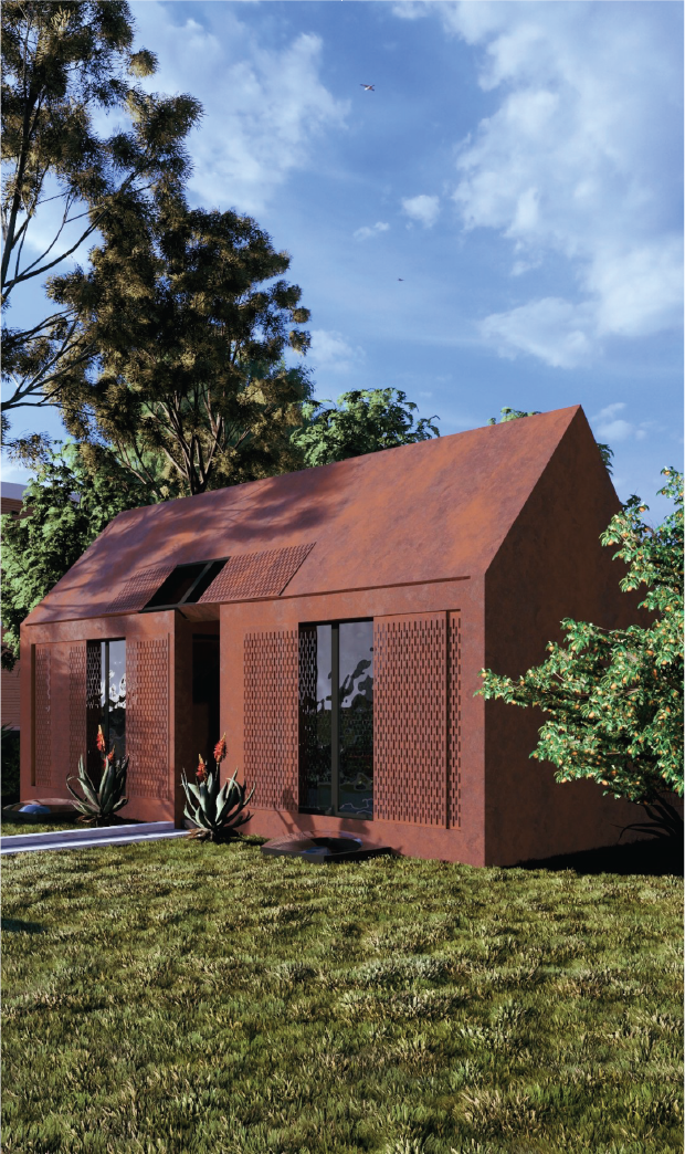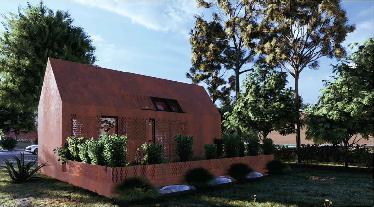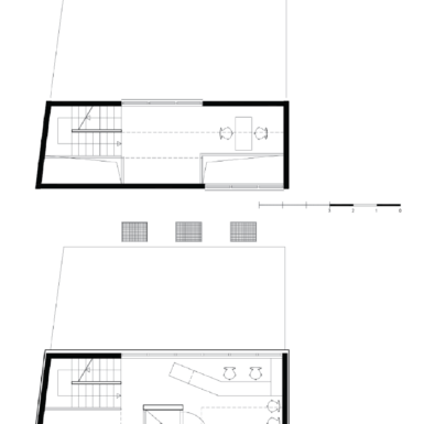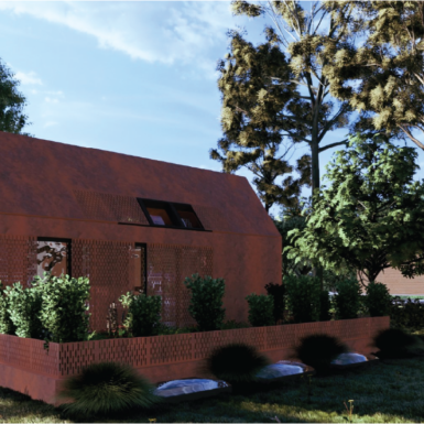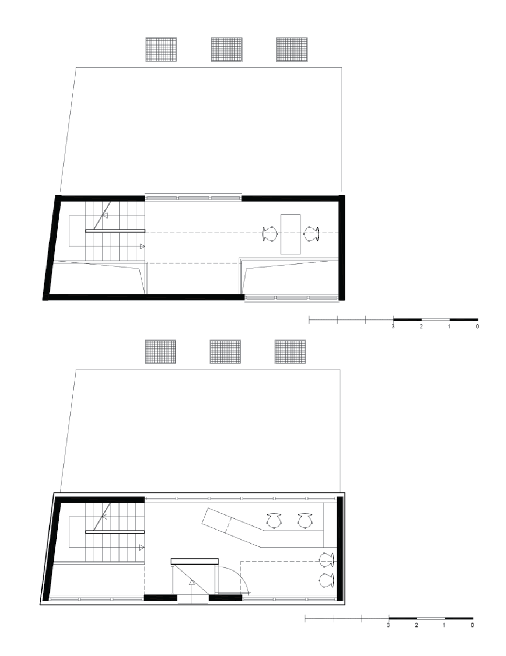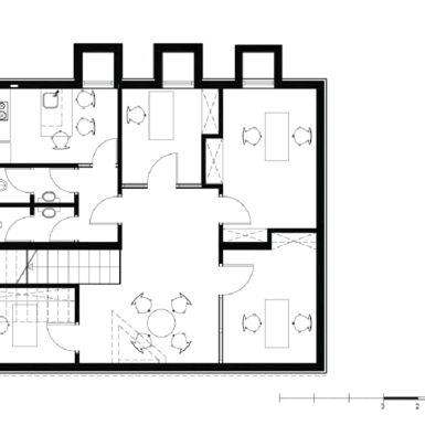 Ulična fasada planiranog objekta je direktno vezana na trotoar ulice. U dvorištu, u prizemlju se nalazi terasa koja je formirana od ravnog prohodnog krova dijela podrumske etaže. Na parceli se nalaze i tri svjetlarnika kojima se osvjetljava podrumska etaža. Unutrašnjost objekta je organizovana kao kancelarijski prostor u tri nivoa. Podzemni nivo je maksimalno iskorišćen, s obzirom na mogućnosti parcele, dok su prizemlje i galerija suženog gabarita, s obzirom na date uslove regulacije. Objekat, upakovan u kutijastu formu armirano-betonskih zidova, obložen perforiranim limom, predstavlja neutralnu arhitekturu, koja se svojim gabaritima, formom i materijalizacijom ne nameće u prostoru, a ipak odaje autonomnost, postavljajući decentne mjere i granice prostornih odnosa u delikatnom kontekstu.