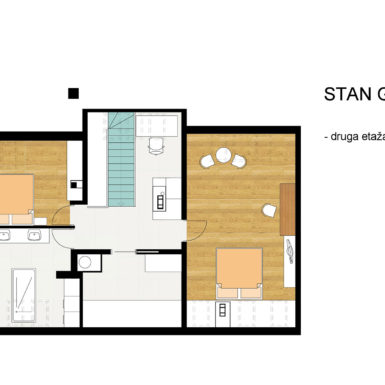 U sklopu stambeno poslovnog objekta na četvrtoj etaži i sa ugovorom da postojećem stanu mogu pripojiti tavanski prostor površine 80m2 sa budućim vlasnicima ulazimo u posao koji će trajati gotovo dvije godine što zbog zakonske regulative što zbog žela vlasnika da u svemu učestvuju. Tako nastaje ovaj dvoetažni stan.