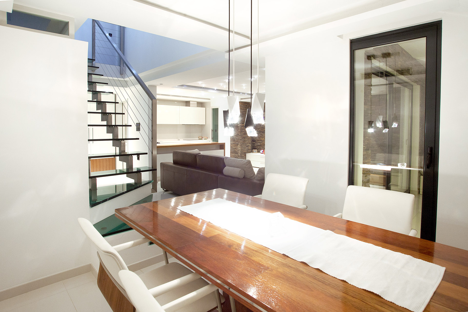 Monohromnost razlivena po svim površinama odiše umirujućim tonovima koji čine sliku toplog doma. Svaki od ovih ambijenata pojedinačno,a opet i svi zajedno, čitljivim jezikom prostornih senzacija dopuštaju da arhitektura bude ono što jeste-umjetnost u kojoj se sa uživanjem živi.