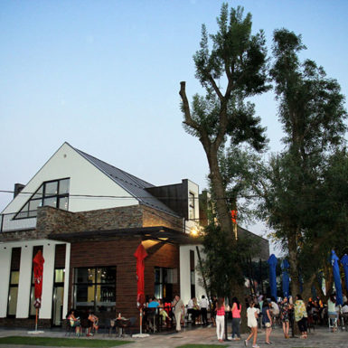 Bašta nije bila u funkciji ranijeg objekta, ali red starih lipa doprinosi novom imidžu Monumentala. To je prostor koncipiran tako da se gosti osjećaju opušteno, zaklonjeno i sigurno, a pod nastrešnicom može da svira orkestar i muzikom boji atmosferu.