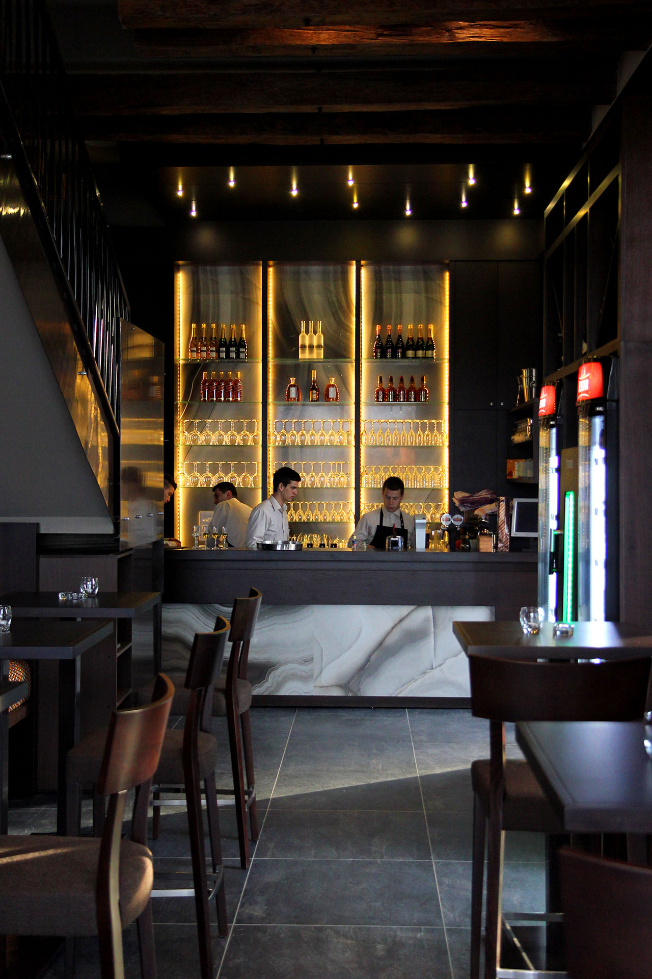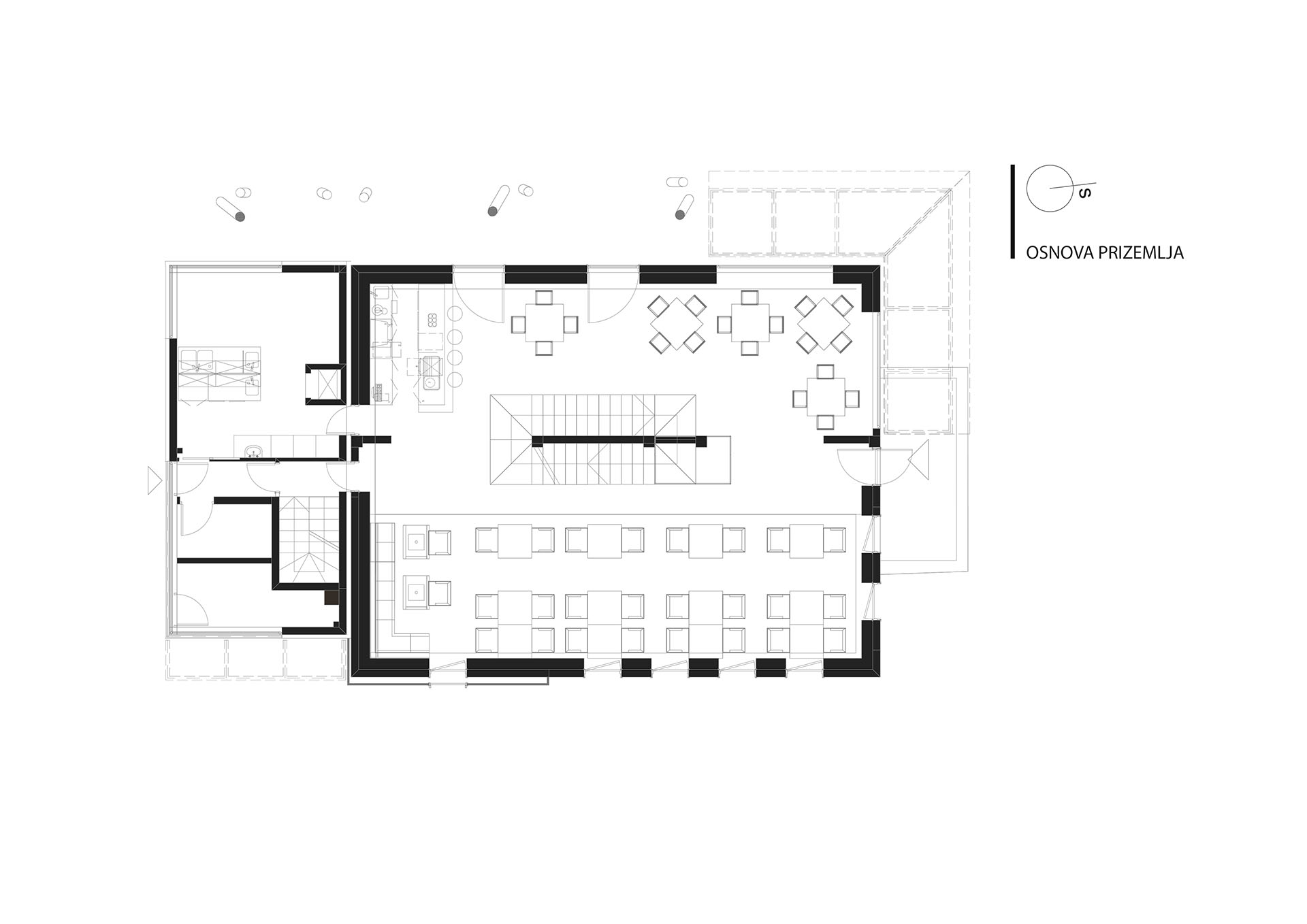 Monumental je jedan od simbola Srbca. Objekat sagrađen dvadesetih godina dvadesetog vijeka i u njemu je bila ,,mehanska,, djelatnost u kojoj je dato ovlaštenje za postavljanje bilijara, istih tih godina. Novi vlasnici su poštujući te podatke željeli da zadrže postojeći objekat iako je rekonstrukcija bila zahtjevnija u svakom pogledu od rušenja i izgradnje novog objekta. Tako smo projektom se vezali za objekat koji zauzima važno mjesto u životu Srbčana. Nakon rekonstrukcije željeli smo uticati i na život nešto mlađih sugrađana. U suštini, želja je bila da reinterpretiramo atmosferu na jedan nov i savremen način.