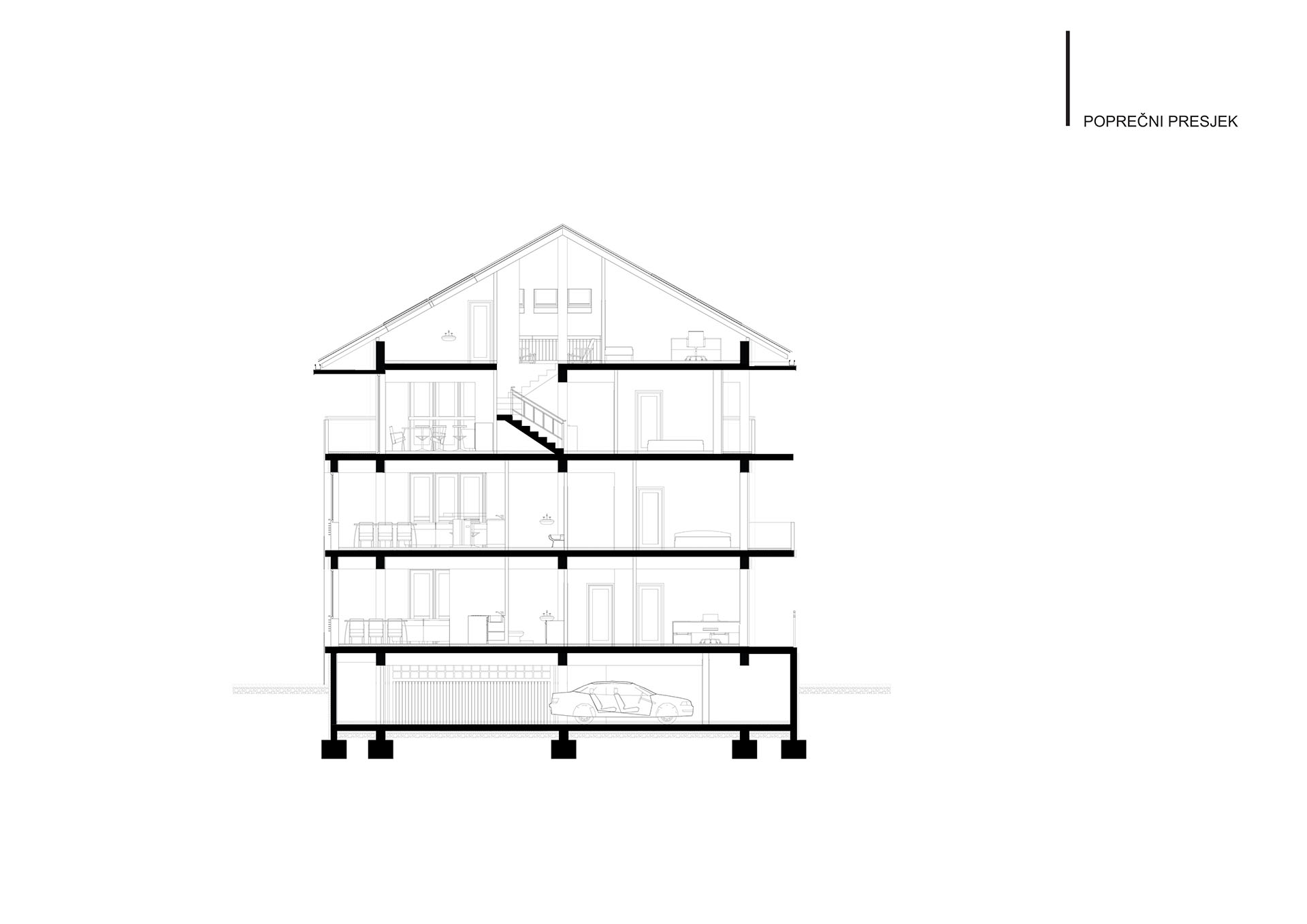 Predloženim rješenjem je poštovan značajan položaj lokacije u gradskoj zoni, kroz ostvarivanje atraktivnih vizura, dobre orjentacije svih stanova i dobre povezanosti svih elemenata kompozicije. Kroz transparentnost strukture i sa velikim otvorima ostvarena je tenzija između eksterijera i enterijera na način gdje arhitektura uzima dio svijeta i formira malu formu od toga.