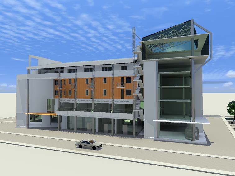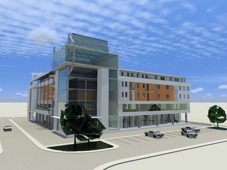 Prodaja je svakako glavna stavka čitave investicije, tako da je funkcionalno rješenje moralo biti maksimalno jednostavno i efikasno za korištenje svakog od dijelova kompleksa. Ovakvi objekti zahtijevaju krajnje minimalistički pristup sa primarnim formama pojednostavljene geometrije. Razrada planova fasada predstavlja segment rada gdje autori pokušavaju da na najbolji način ,,uklope”objekat u okruženje. Stepen takve razrade određuje, na neki način, i konačan rezultat u tom domenu. To je i mjesto međutim, za pokušaj stvaranja jedinstvenog karaktera zgrade.