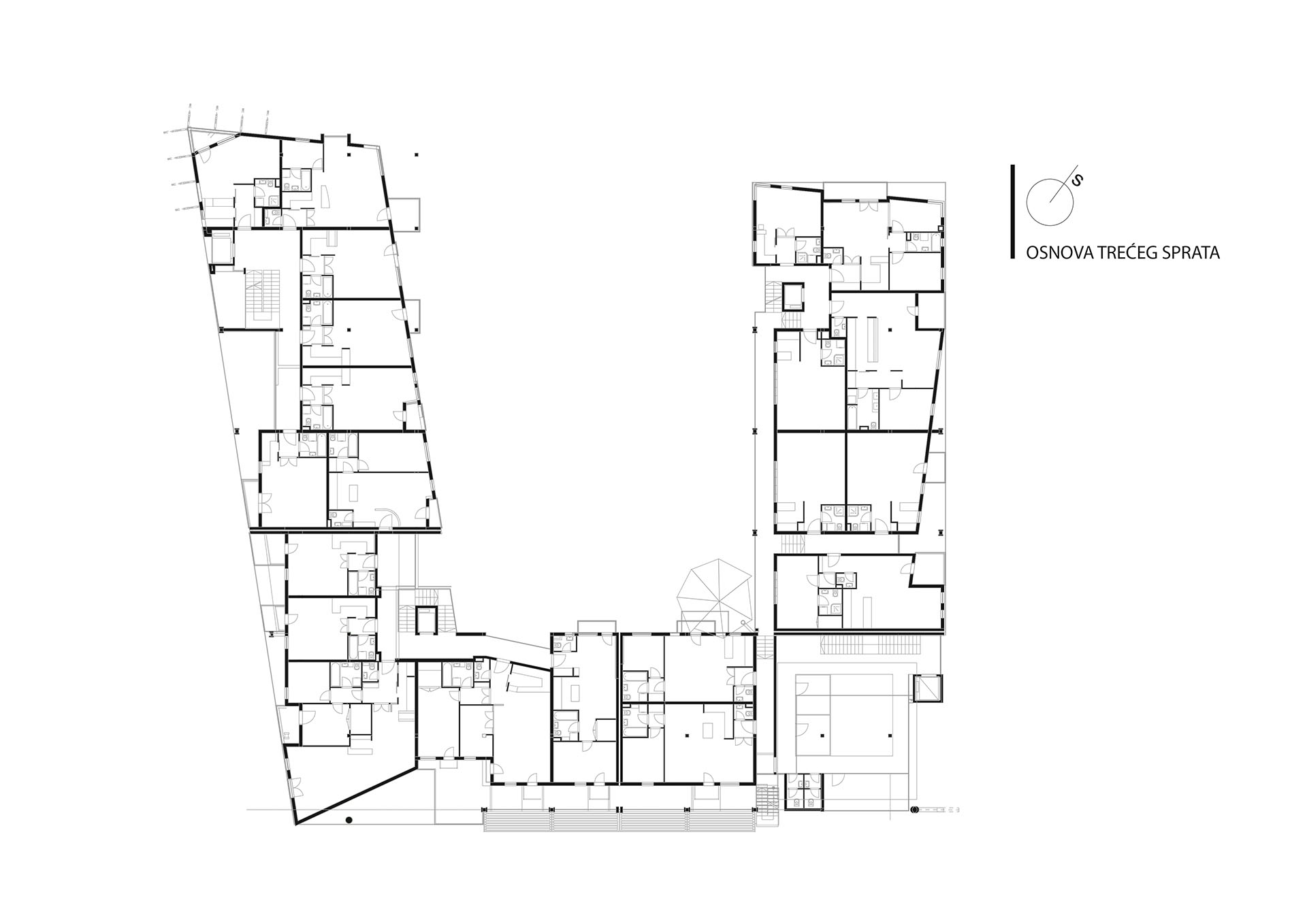 Težnja da se jasno izrazi način funkcionalne organizacije, kompaktno i trokrako rješenje volumena nametnulo se kao jedino prihvatljivo sa stanovišta estetike takođe, ali i kao racionalan odgovor na pitanje o ekonomičnosti. Objekat obzirom na svoju kvadraturu djeluje manji i uklapa se u okolni prostor, dajući mu dodatni kvalitet.