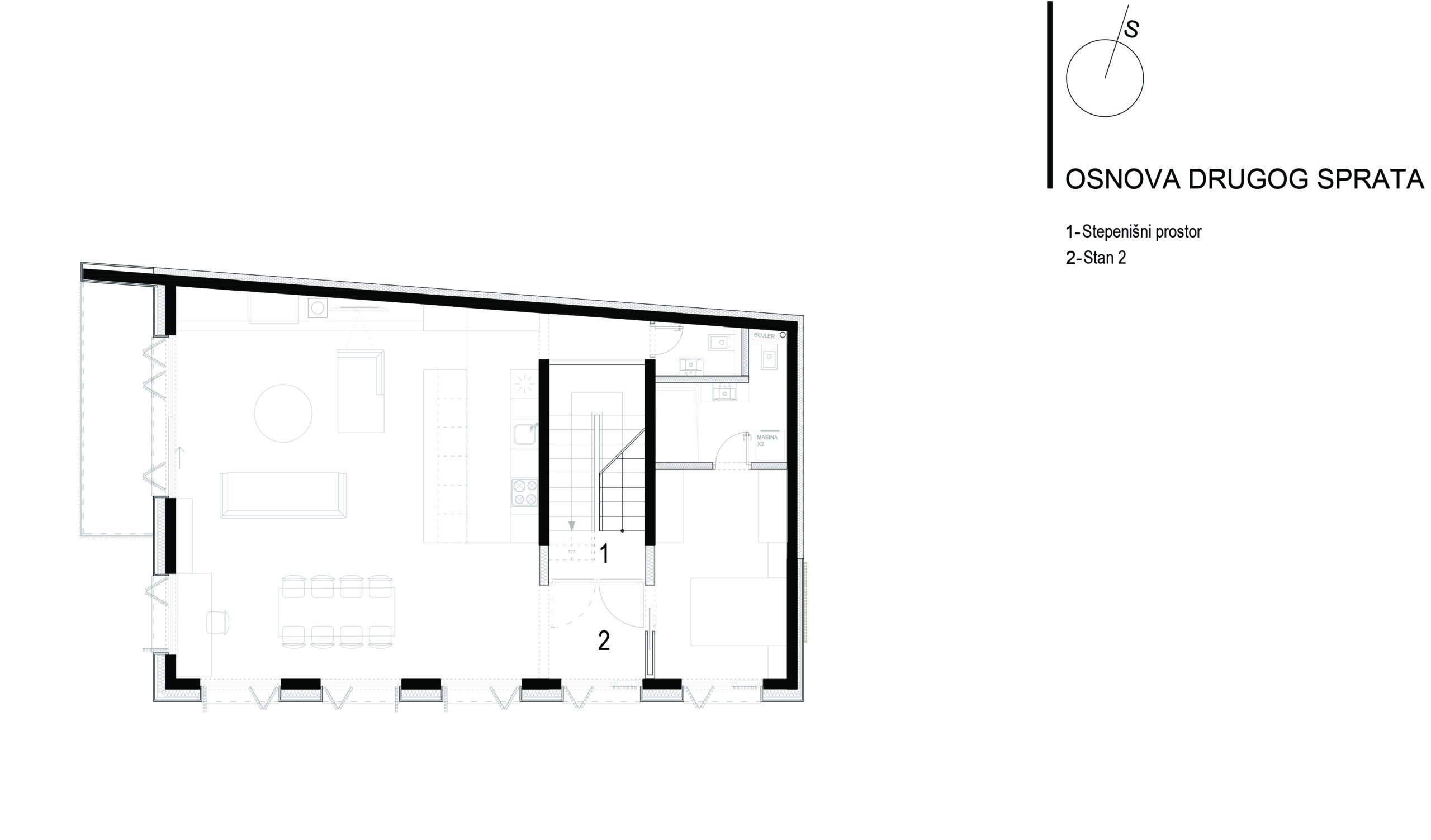 Namjena objekta je stambeno-poslovni objekat gdje je poslovni dio u prizemlju, a stanovanje na prvom i drugom spratu po jedan stan. Prostor podruma je pomoćni prostor kome je zbog nemogućnosti dizanja objekta a neophodnosti prirodnog ventilisanja, ventilisanje omogućeno preko šahta sa rešetkom ispod ulaza u poslovni prostor koji je i jedini natkriven balkonom.