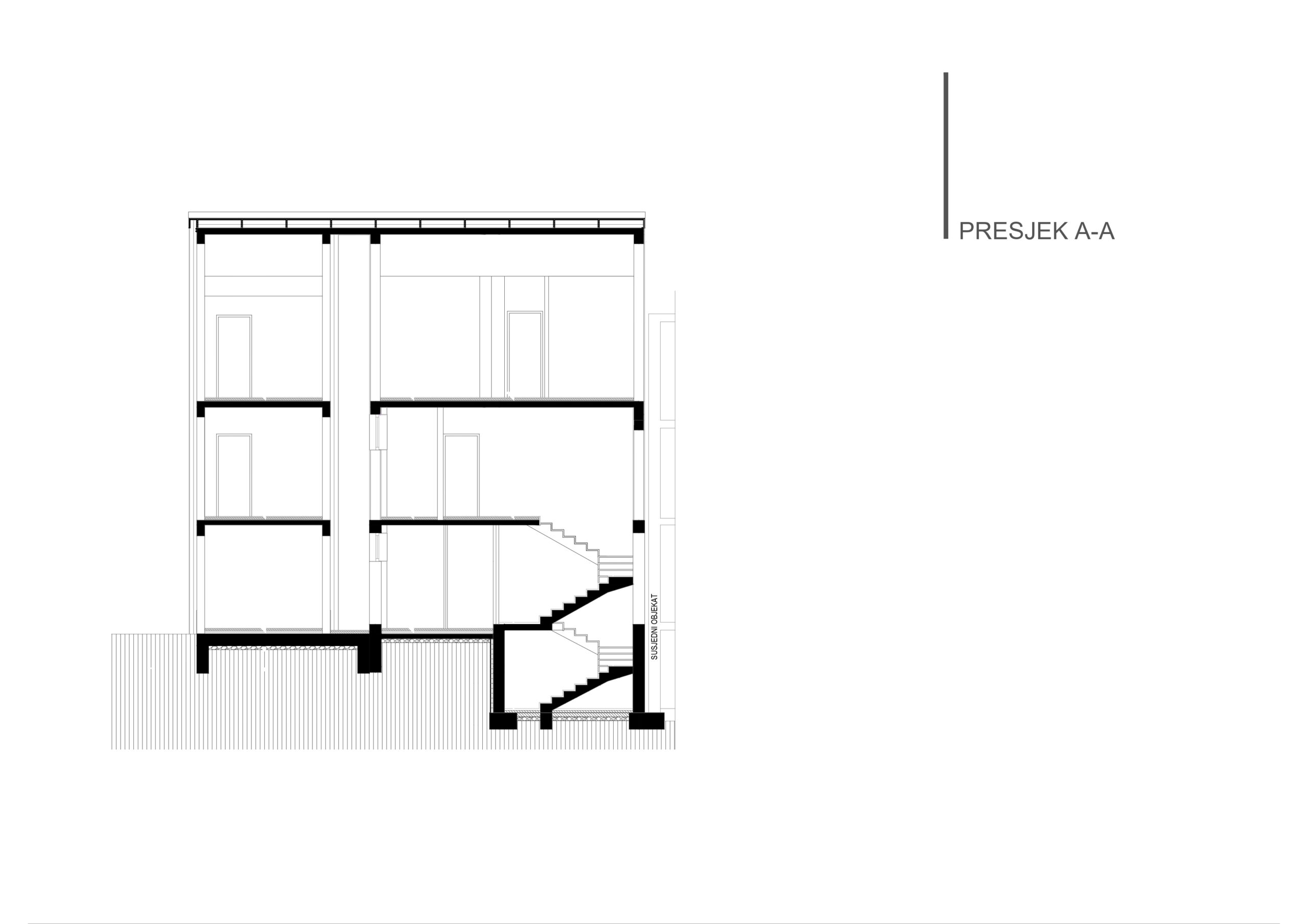 Projektom je predviđena i rekonstrukcija postojećeg stanja, koja podrazumije suggests uklanjanje dijela postojećeg objekta, vanjskog stepeništa i krova, kako bi se omogućila nadogradnja mansarde i formiranje nove prostorne i funkcionalne cjeline.
